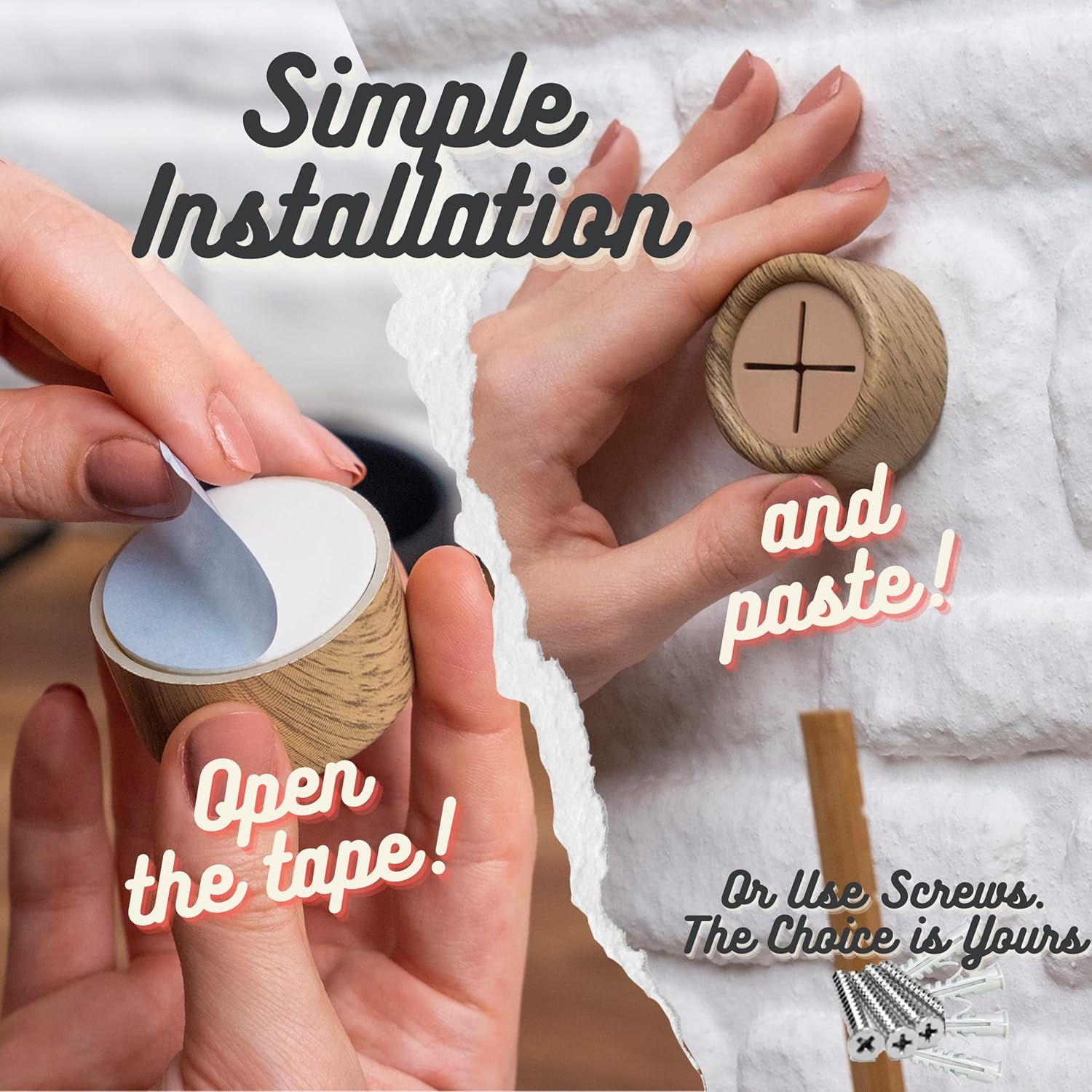 - Important Details - Our towel hooks come with screws (Kale Brand) and dowels, and self-adhesive tape (Orafol Brand) has been applied to the product. The double-sided tape is suitable for towels 2 pounds and lighter, but for heavier towels, it's recommended to mount with screws.