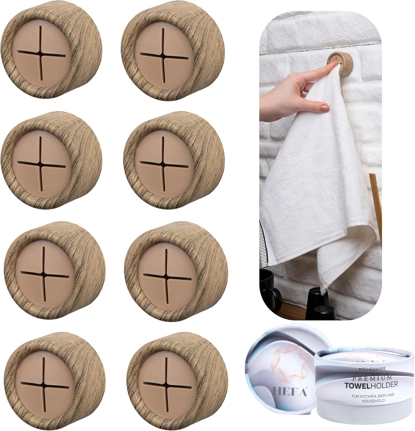HEFA Towel Hooks, 8 Pack, Kitchen Organization, Modern Design, Plastic, Polished, Wall Mount, Storage Hook