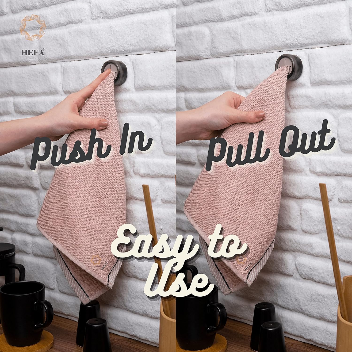 - Effortless Organization - Our practical towel hooks are versatile and easy to use. Hang hand towels, dishcloths, gloves, aprons, and more in your kitchen or bathroom. The silicone grips use a physical buckle principle to hold towels tightly without causing damage. Simply push and release to add or remove your towel.