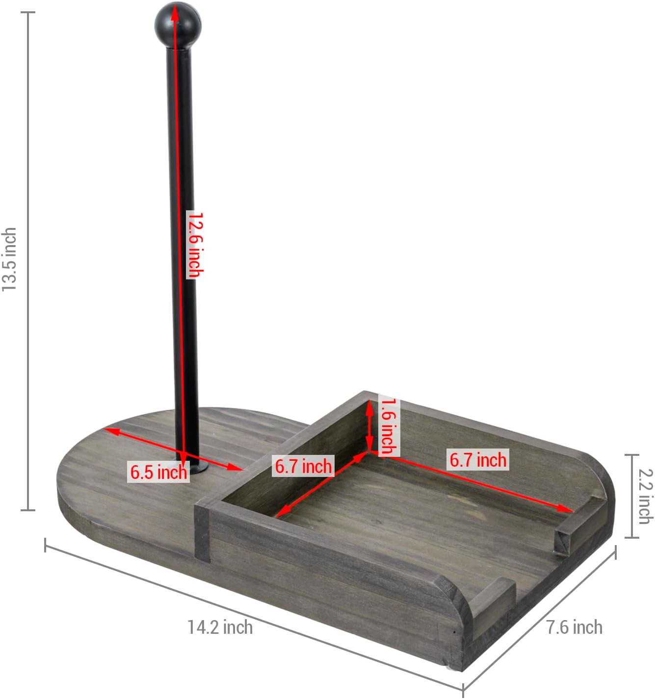 - 2-in-one combination wooden rack with vertical paper towel roll holder and napkin tray for kitchen storage and dining convenience **Paper towels and napkins not included**