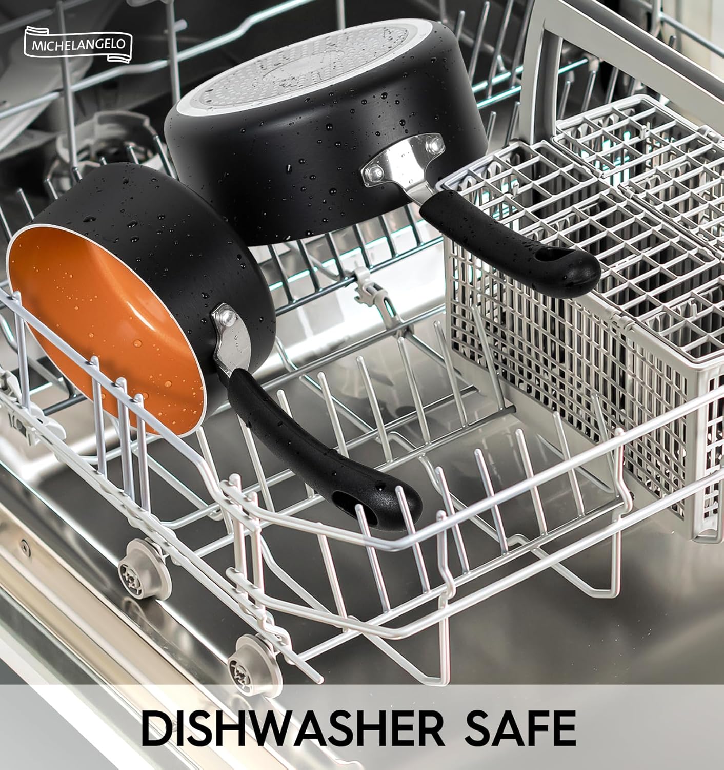 - [FAST & EVEN HEATING] - The cooking pots in our sauce pan set have durable aluminum alloy bases that greatly enhance heating performance. Suitable for all stovetops. Dishwasher safe