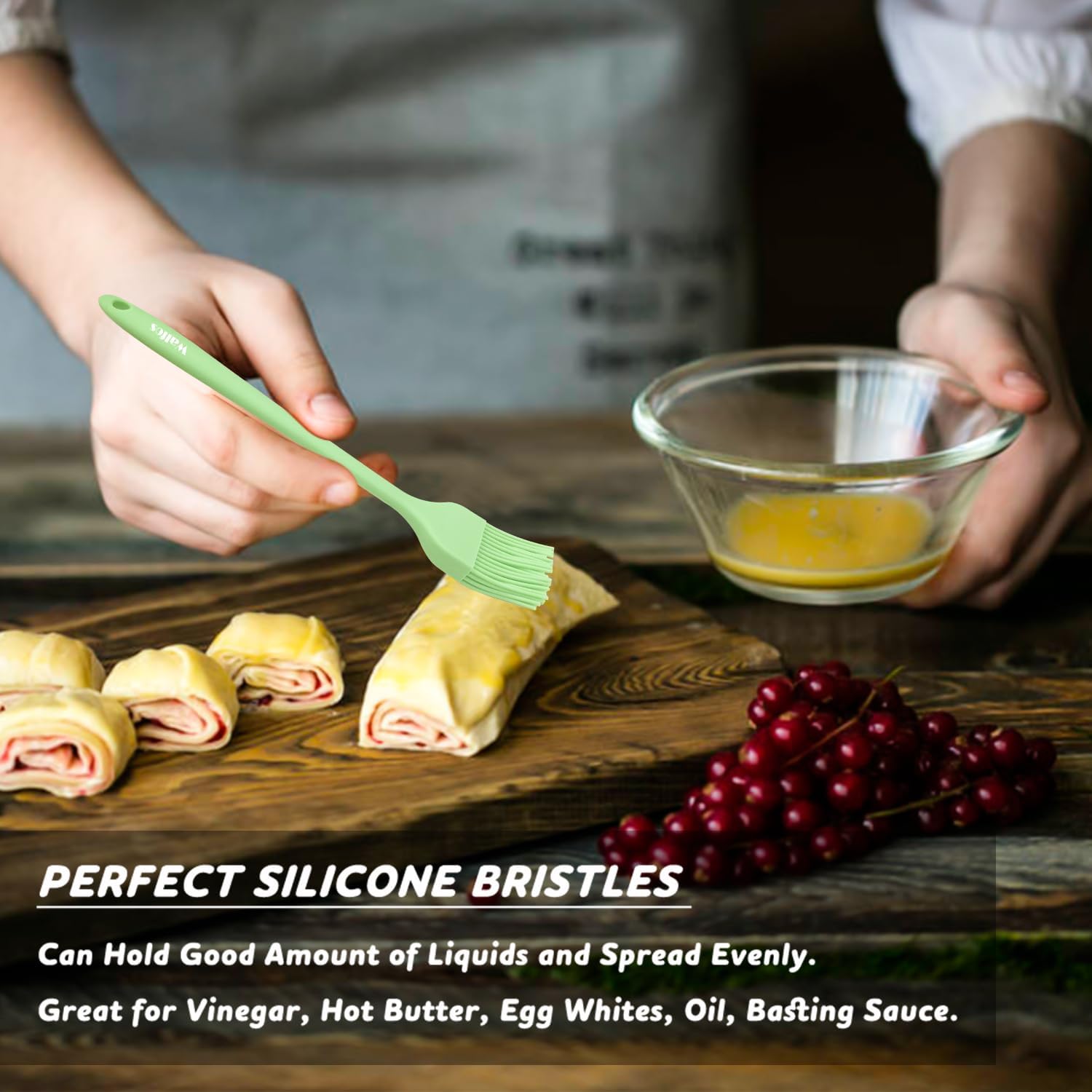 - ★ Upgraded ONE-PIECE DESIGN & STAINLESS STEEL CORE TECHNOLOGY - Walfos basting pastry brush,Owing to ONE-PIECE design, the silicone bristles will not break or shed in your food, unlike other bristle brushes. No bacteria will be stuck in the silicone basting brush and keep your food safe. The handle built with internal steel core results in a solid durability to our basting oil brush, it is also long enough to get a firm grip, never break and rust.