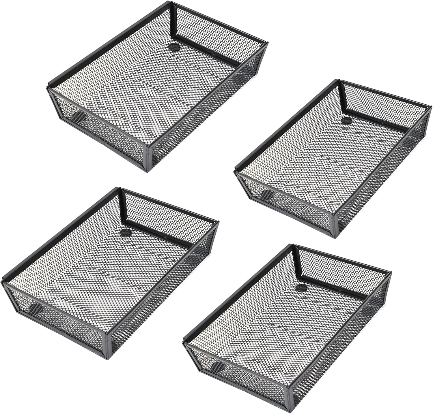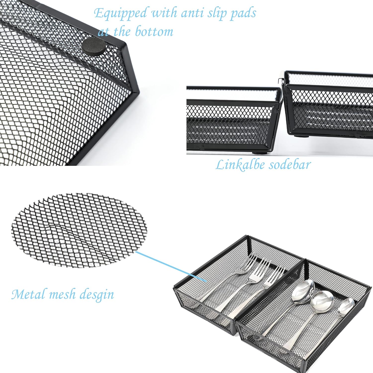 Mesh Tray Kitchen Drawer Utensil Cutlery Tray Office Supplies with Inter-locking Arm Drawer Dividers Organizer for Silverware, Flatware, Home,Office, School,Bedroom(9"X6"4pack) Black