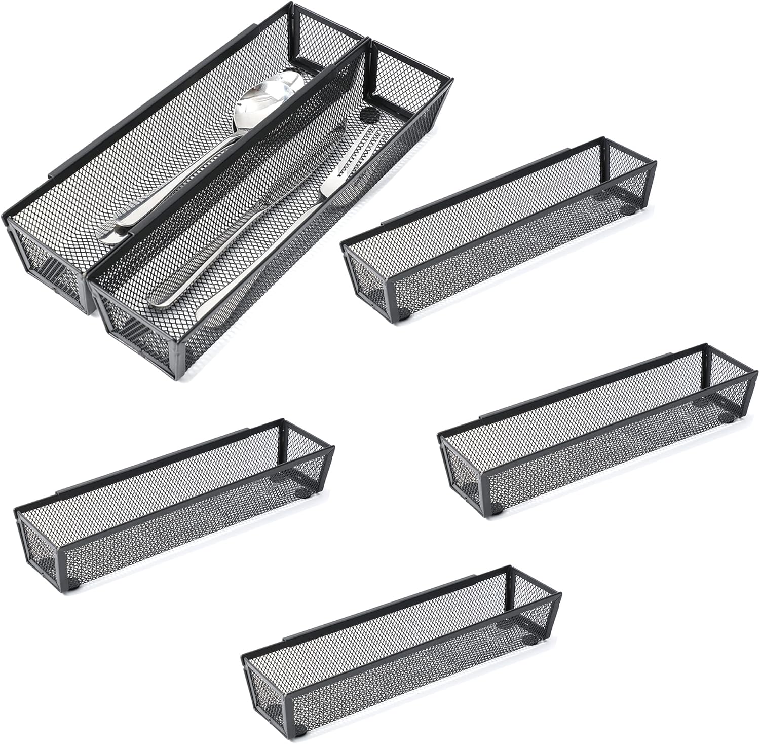 6 Pack Black Silverware Drawer Organizer Kitchen Drawer Utensil Cutlery Tray Office Supplies with Inter-locking Arm Drawer Dividers Organizer for Silverware, Flatware, Home,Office, School,Bedroom 12X3