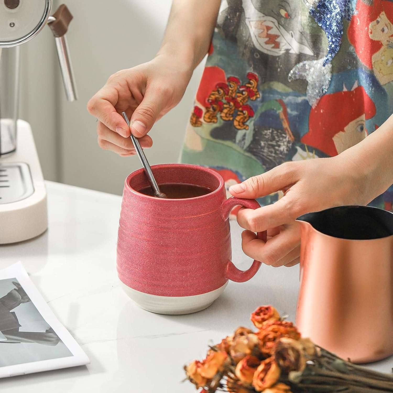 Hasense Coffee Mug, 20 oz Ceramic Coffee Cup for Hot and Cold Drink, Large Latte Mug with Comfortable Handle for Tea Coffee Cocoa, Mother's Day Gifts, 1 PCS(Pink Red)