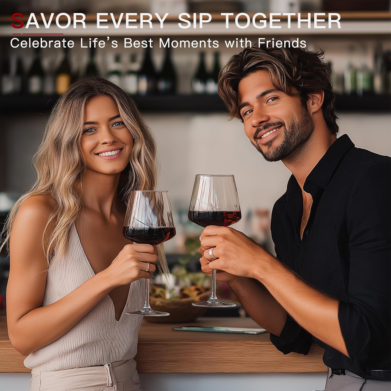 - 🍷Brilliantly Refractive Crystal: Our glasses are crafted using fine titanium crystal and a patented chemical formulation, replacing lead content. The result is a glass that is not only ultra-clear and pure but also refracts light beautifully. Watch in awe as your wine sparkles and dances in the glass, captivating even the most discerning eye. A feast for the senses indeed!