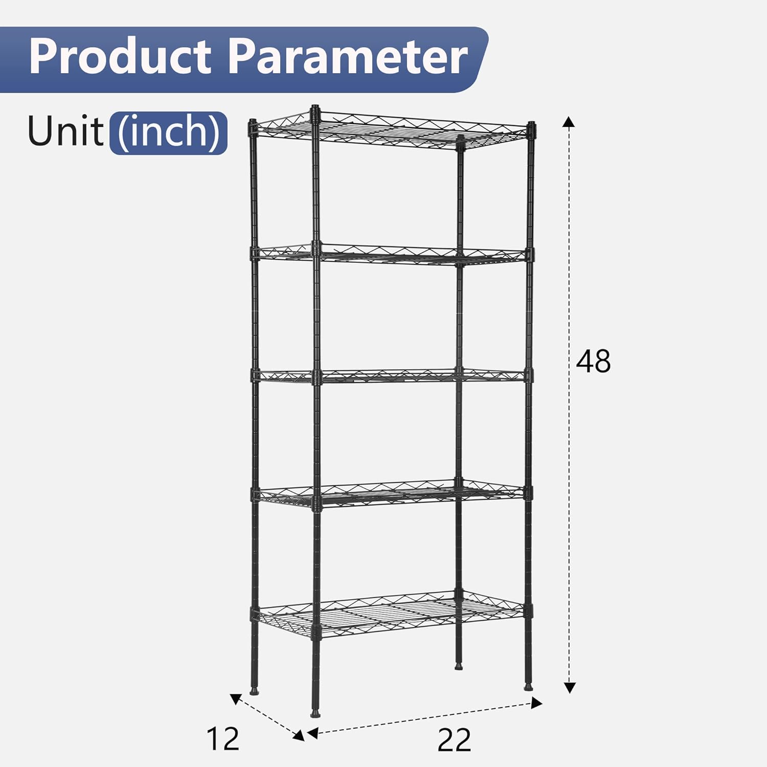 - Durable and sturdy: This shelf is made of heavy-duty steel wire, which is durable and resistant to dirt accumulation and corrosion. After proper assembly, the maximum weight of each shelf layer can reach 150 pounds, and the maximum total weight of the entire shelf can reach 750 pounds.