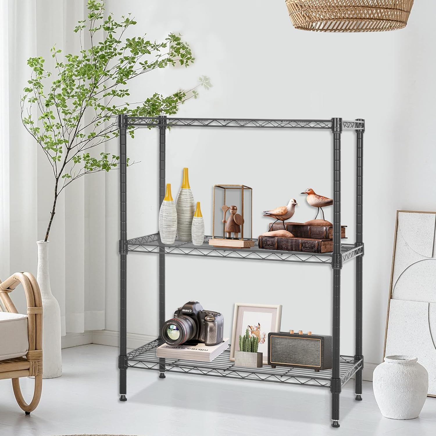 - Adjustable: You can adjust the height of the storage rack according to the size of the item. The spacing between each layer of this wire frame can be adjusted. The adjustable leveling feet of the frame allow the wire frame to be placed on uneven ground - it can be stabilized with just a simple twist.
