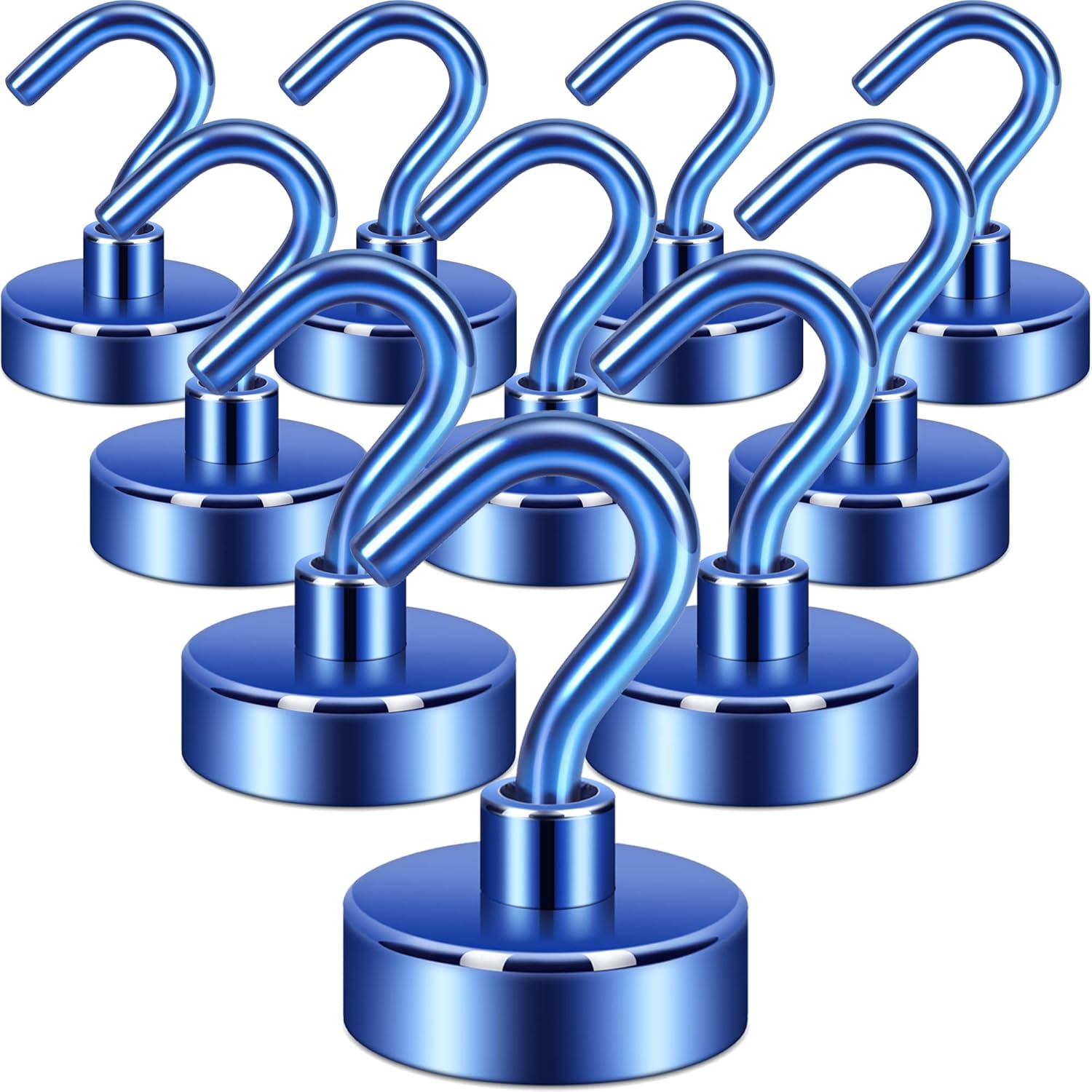 Neosmuk Magnetic Hooks, Heavy Duty Earth Magnets with Hook for Refrigerator, Extra Strong Cruise Hook for Hanging, Magnetic Hanger for Cabins, Grill (Navyblue, Pack of 10)