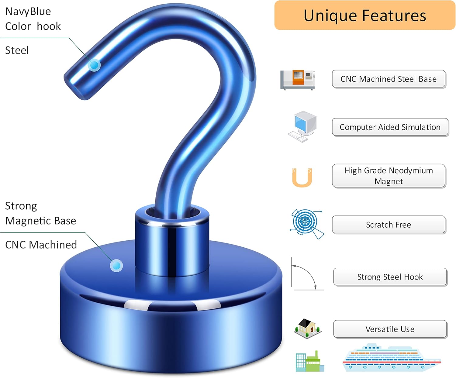 - ✔ SUPER POWERFUL - Amazing strong, sturdy, and heavy-duty metal magnetic hook with a CNC machined steel base, embedded with a high grade latest generation of ‘magnetic king’ i.e. super Nd-Fe-B, this magnetic hook offers strong pulling force under steel. The magnetic hook is perfect for hanging items on the fridge in the kitchen.