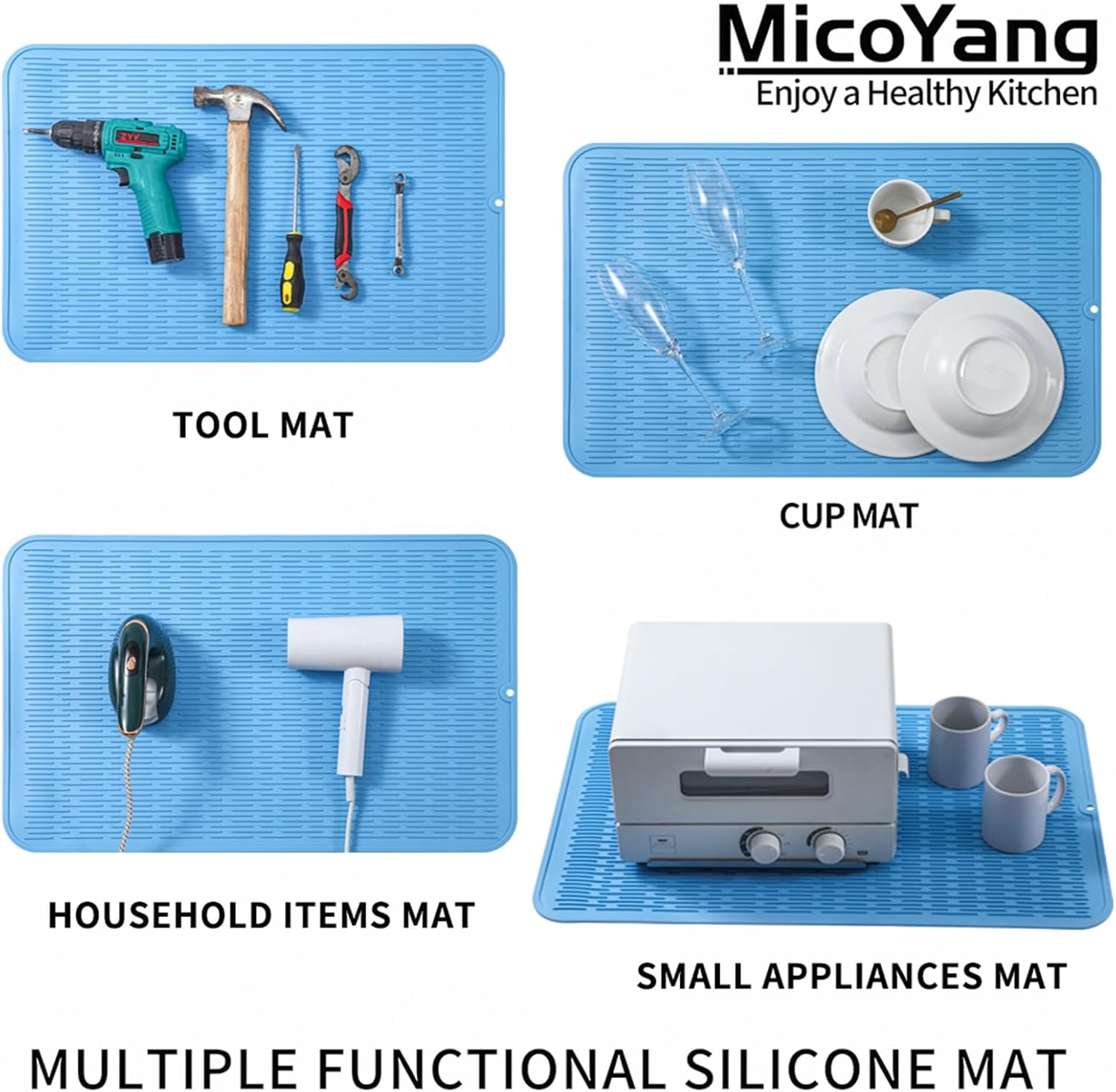 Silicone Dish Drying Mat for Multiple Usage,Easy clean,Eco-friendly,Heat-resistant Silicone Mat for Kitchen Counter or Sink,Refrigerator or Drawer Liner Light Blue 4XL 32 inches x 18 inches