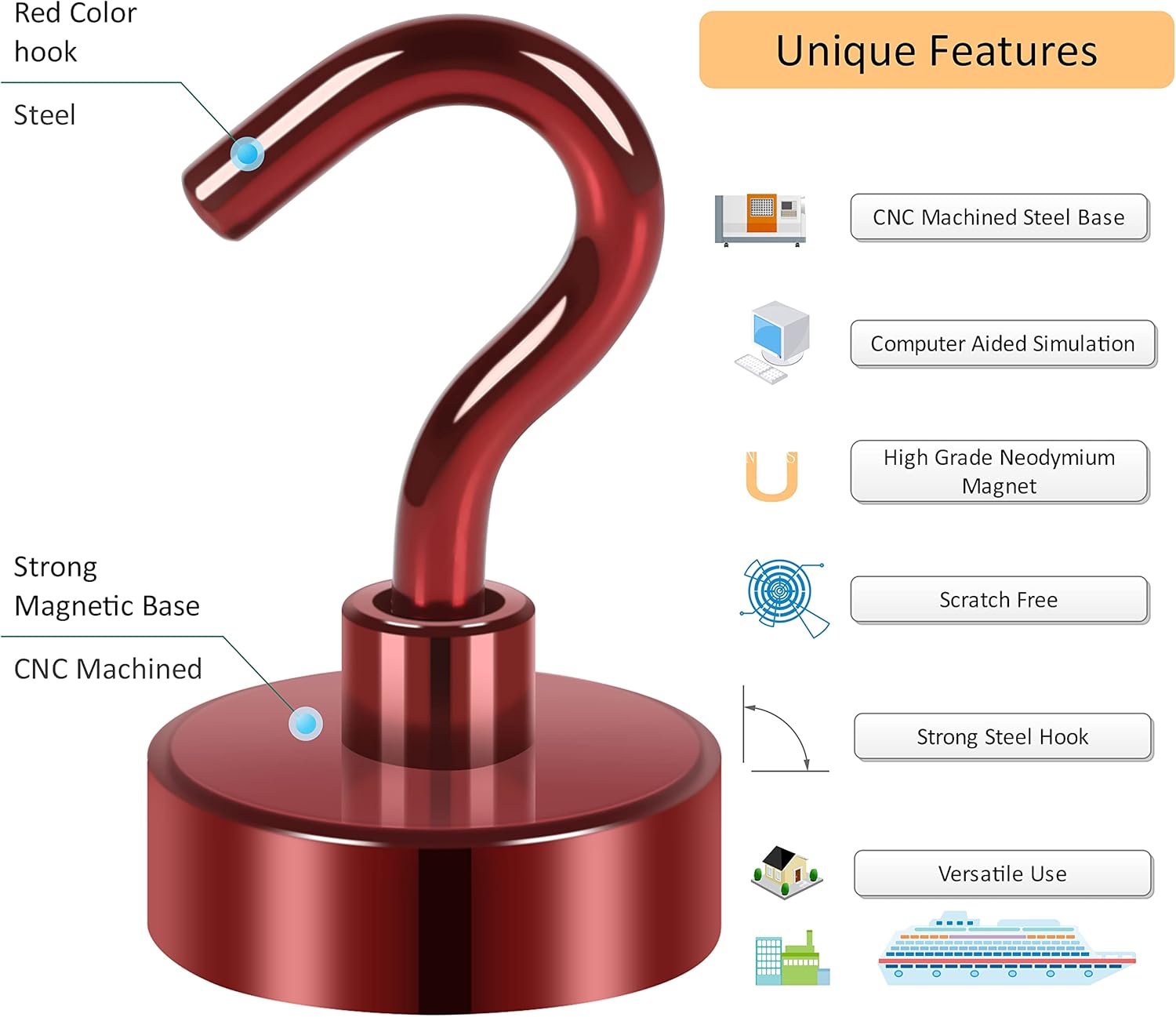 - ✔ VERSATILE USE- Neosmuk’s strong neodymium magnetic hooks were endowed with a strong capability for holding various items wherever there is iron or steel. This magnet hook is a perfect magnetic key holder. You can also hang your tools next to the toolbox with this magnetic hook. Our magnetic hooks are great for grill, pot, cup, utensils, and oven.