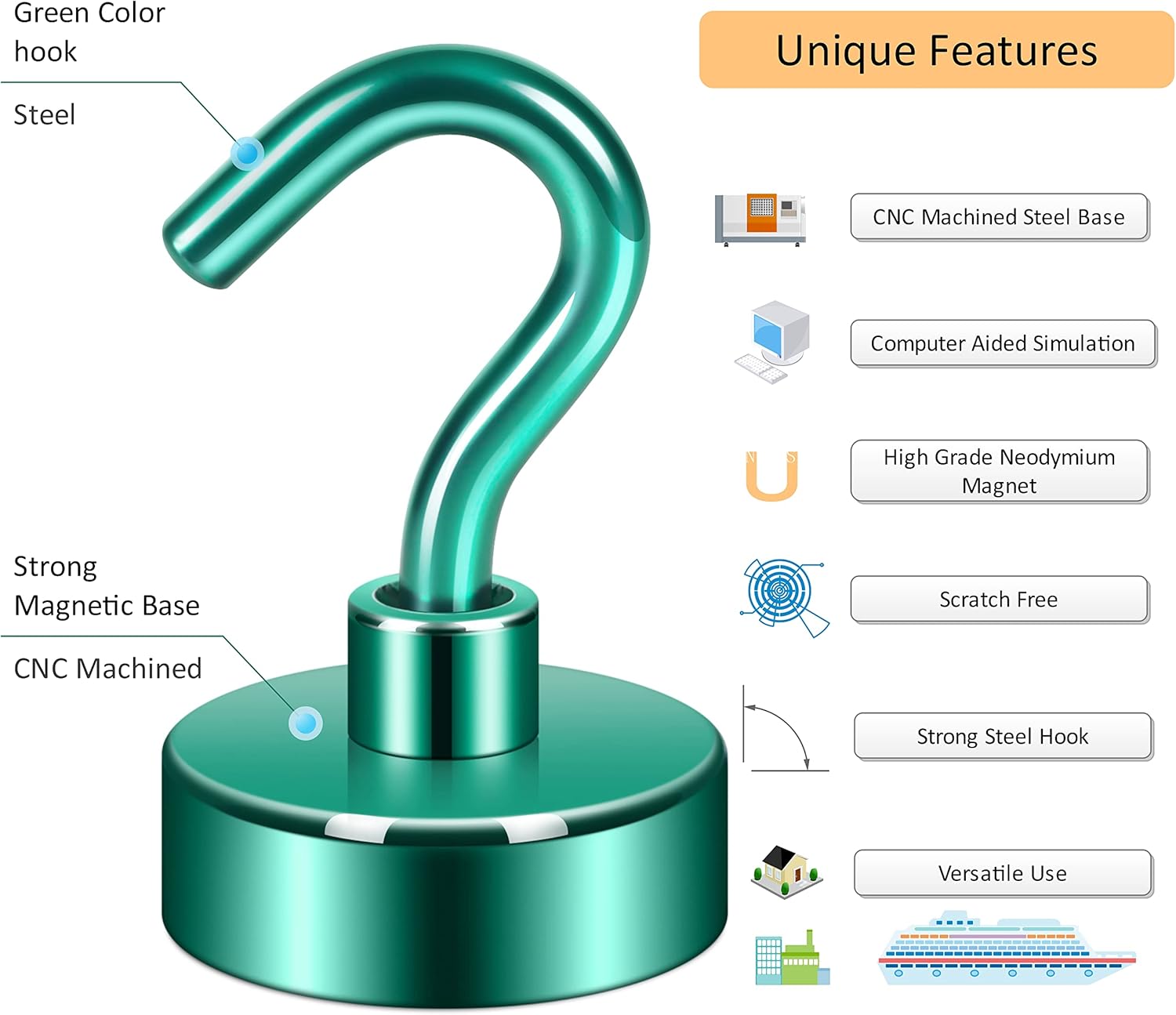 - ✔ SUPER POWERFUL - Amazing strong, sturdy, and heavy-duty metal magnetic hook with a CNC machined steel base, embedded with a high grade latest generation of ‘magnetic king’ i.e. super Nd-Fe-B, this magnetic hook offers more than 3 lb pulling force under steel. The magnetic hook is perfect for hanging items on the fridge in the kitchen.