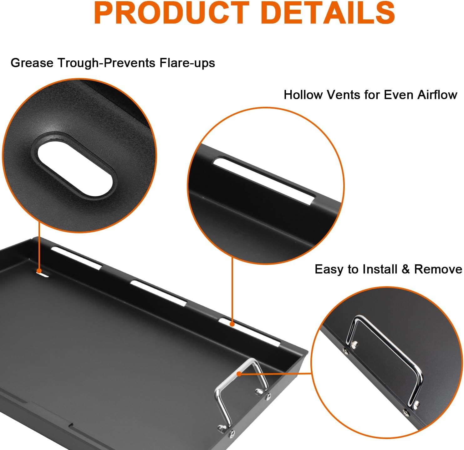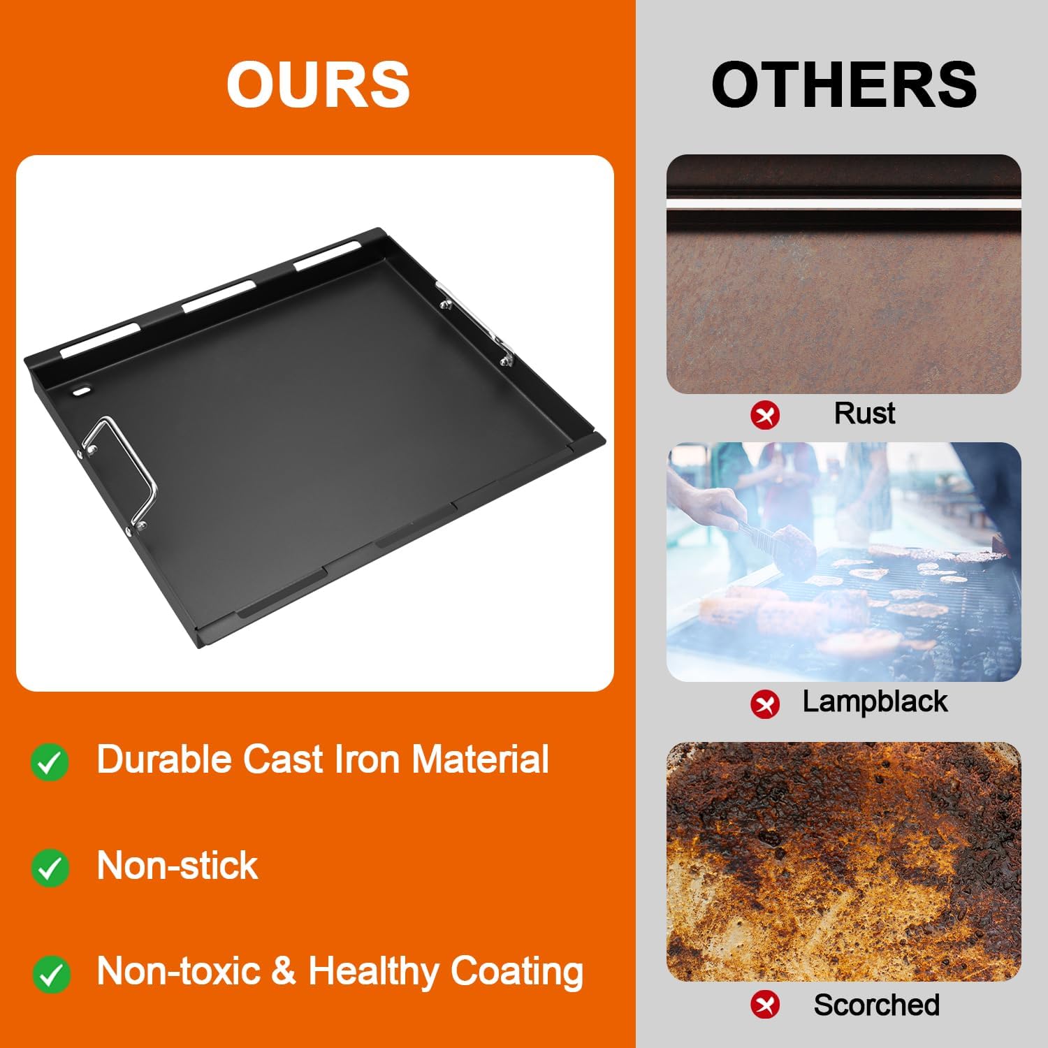 - 【Package & Dimension】Includes one full-size griddle inserts. Dimension: 17.5 x 23.8 inch. Transform your grill into a griddle grill with our flat top plate in seconds. The non-stick surface of our full-size griddle insert is more durable and heats up faster than other griddles, so you can cook a big meal quickly and easily.