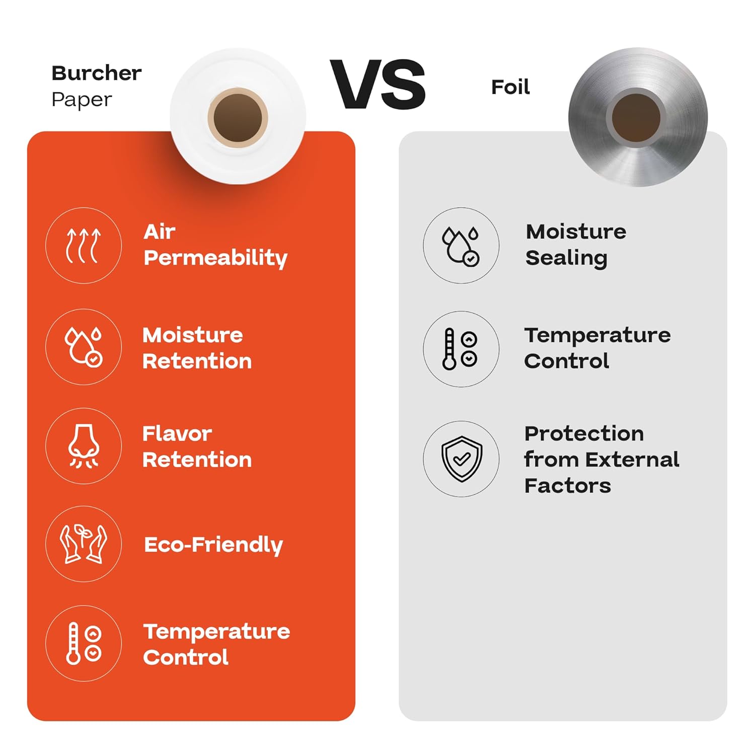 - OUTPERFORMS FOIL: Unlike foil, our butchers paper is breathable, preventing meat from drying out and enhancing its flavor. It promotes even cooking and is ideal for grilling and smoking, offering a natural, effective alternative for great results