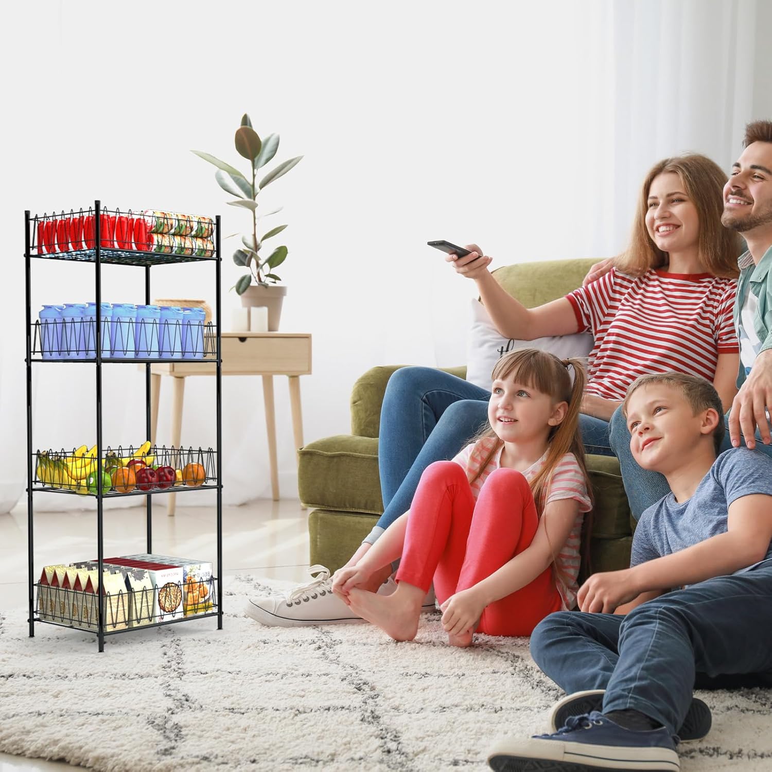 - 【Saving Space】Product Dimensions: 12.5"D x 16.7"W x 46.2"H. The shelves for water bottle storage has 4 tire storage space. FreeStanding design makes you maximize the use of vertical space. You can put your bottled water, purified water, pop cans, soda cans, food cans on the water bottle storage organizer. The canned food organizer helps you make your home tidy and work efficiently without taking up too much space.