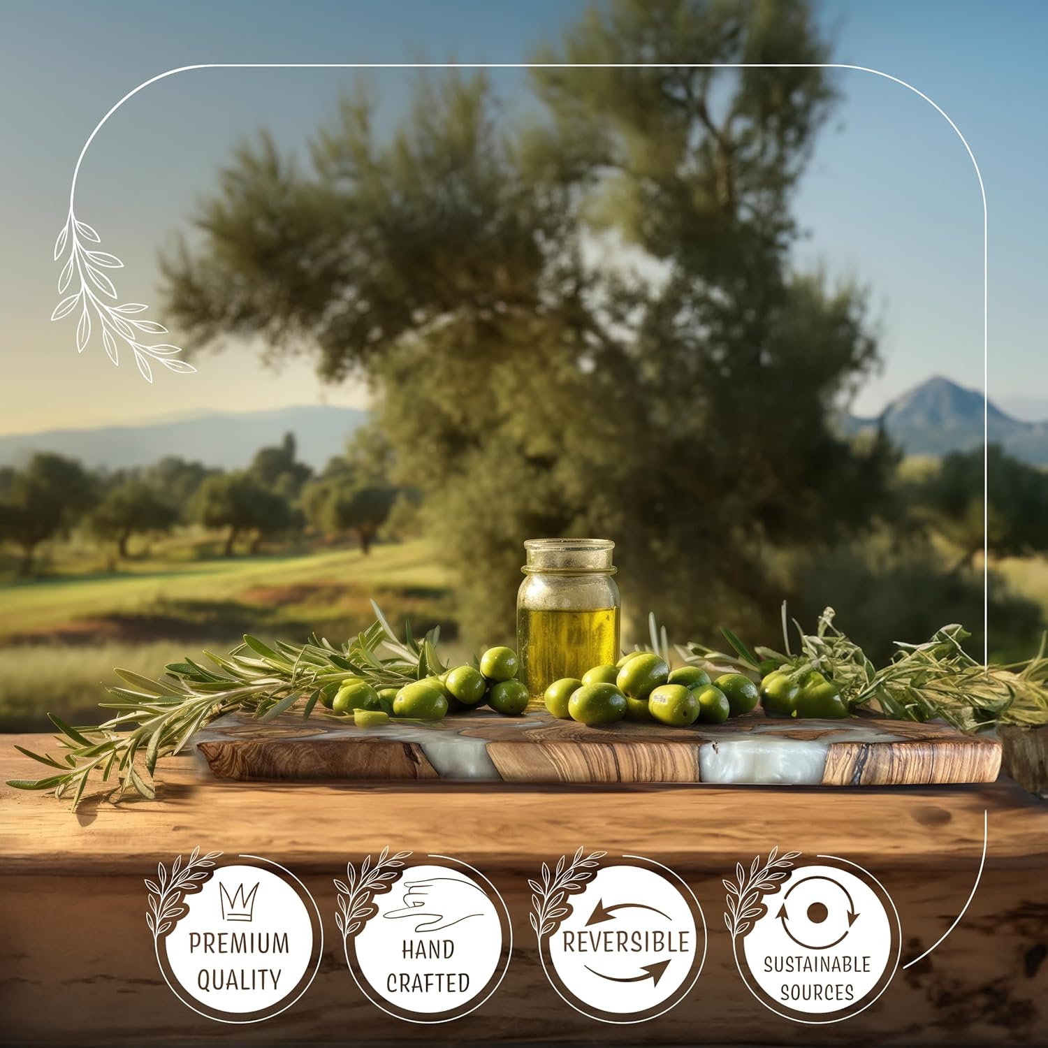 - Versatile And Elegant: You may use both sides for serving cheese, fruit and meat as an elegant and luxury olive wood charcuterie board or resin cutting board. The natural beauty of the olive grain makes these cheese charcuterie boards multifunctional for wine plates, hors d'oeuvres. Olive wood kitchen serving platter is gracious for serving, steak, pizza, fruits, sushi, bread and other appetizers. Our handmade large wooden cutting boards for kitchen make a heart-warming centrepiece on any dining table.