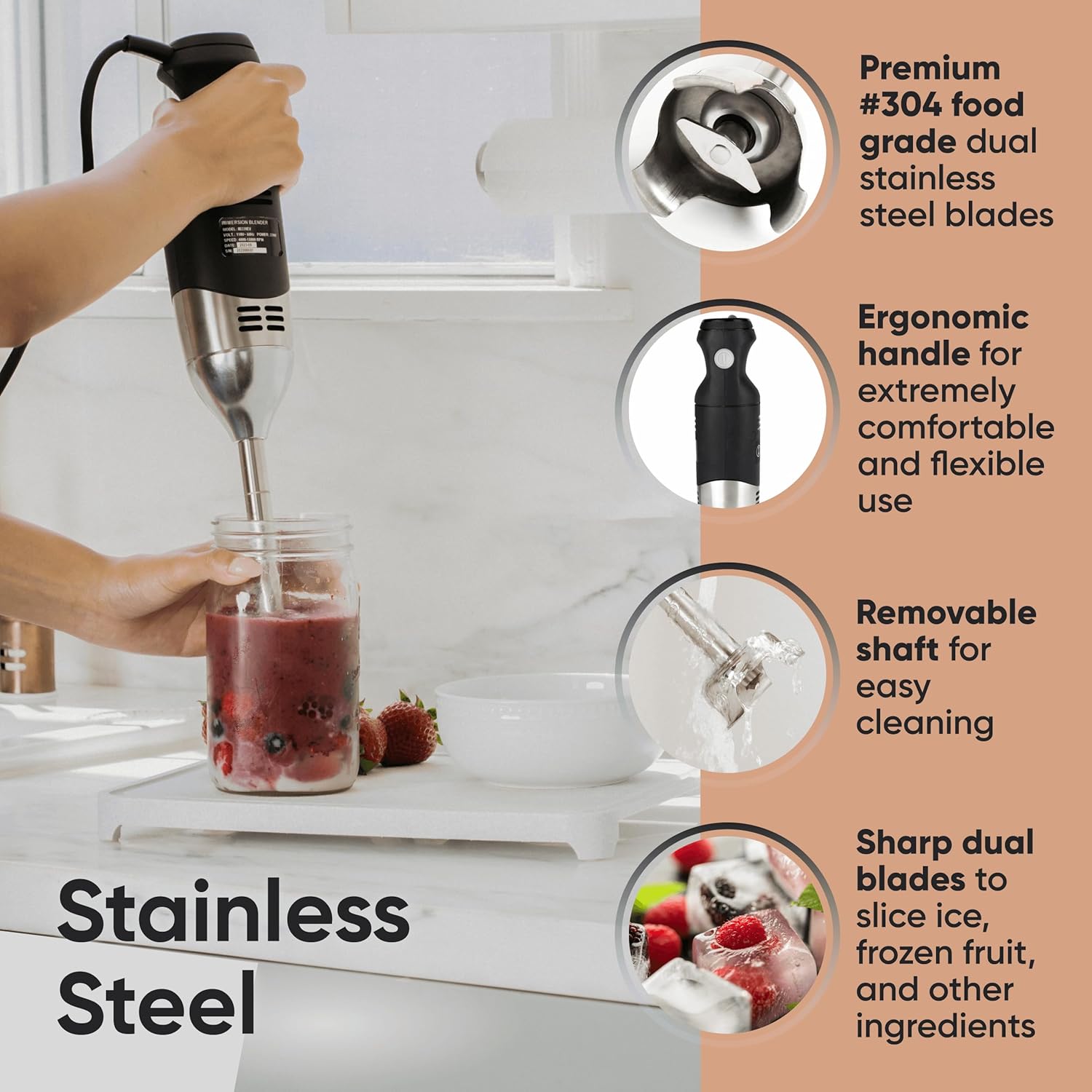 - Unwavering Reliability: With a robust 220-watt motor and a 1-year warranty, our immersion blender is a testament to its dependable performance and your peace of mind. This isn't just an appliance; it's a commitment to reliable performance and your utmost satisfaction.