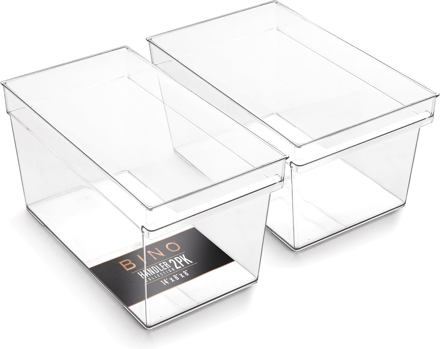 BINO | Plastic Storage Bins, Large - Deep | THE HANDLER COLLECTION | Multipurpose Organizer Bins | Kitchen Pantry Organizers and Storage | Clear Containers for Organizing Home | Freezer Organizer