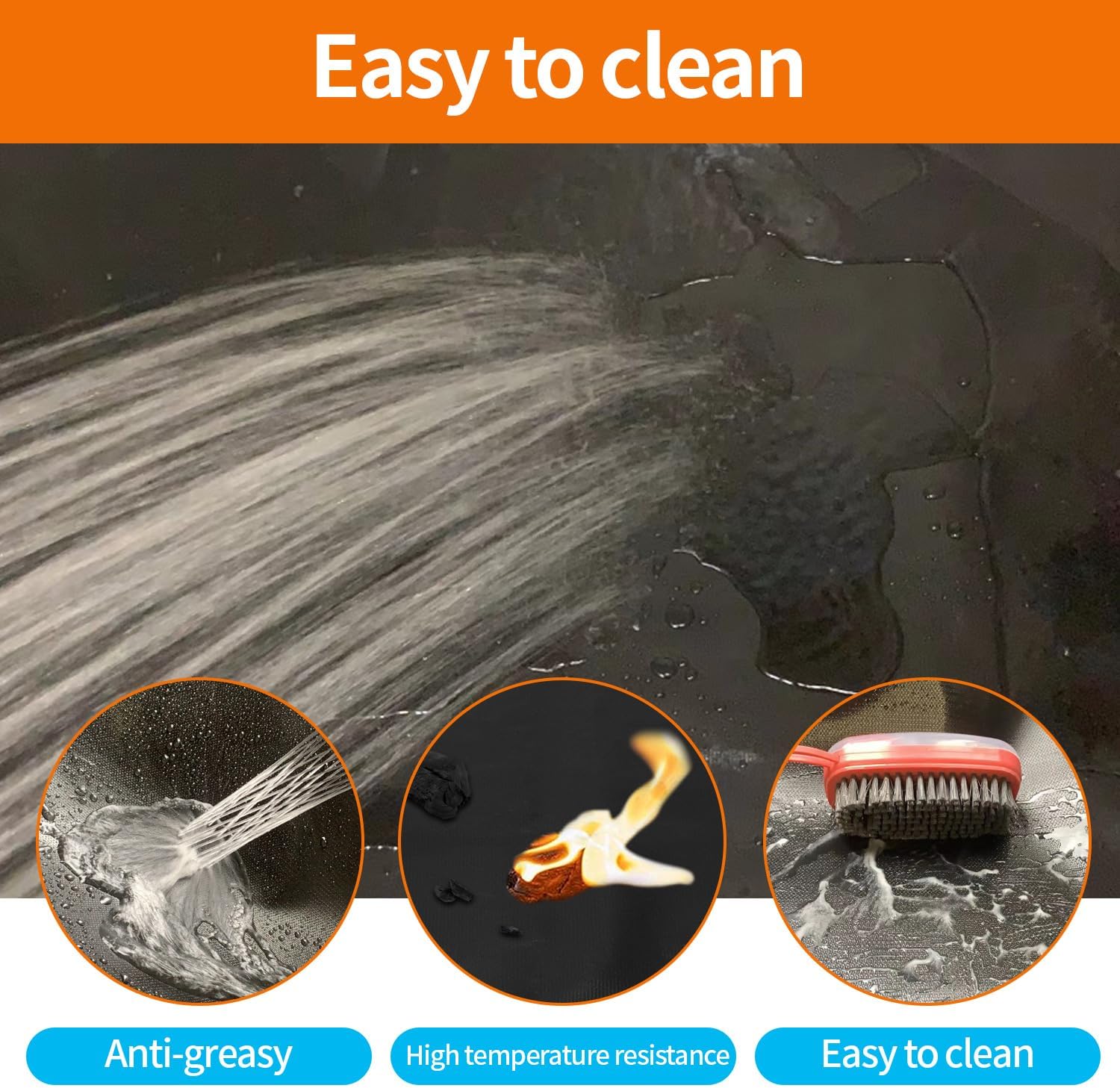 - ▶️EASY To CLEAN - Double-sided silicone layer,that's why easy cleaning . Spills and Splatters on surface of the Fire Pit Mat,Not absorbing them,Brinman BBQ Mat for under Grill is waterproof ,it is easy to clean with mild soap and water or spray it down with a water hose. and can sweep them by a broom. ▶STORAGE - It can be folded up for easy storage and convenient transportation.black style Floor Mat match with any deck or grills.