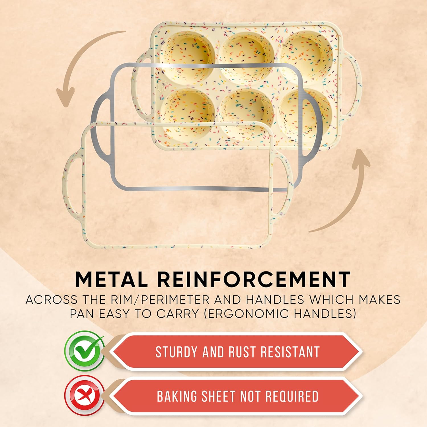 2 Pack Confetti Regular Size 6 Cup Silicone Muffin Pans for Baking, Non-Stick Silicone Cupcake Pans for Baking,Easy-Release, Metal Handles, Dishwasher Safe & BPA Free - Confetti Color
