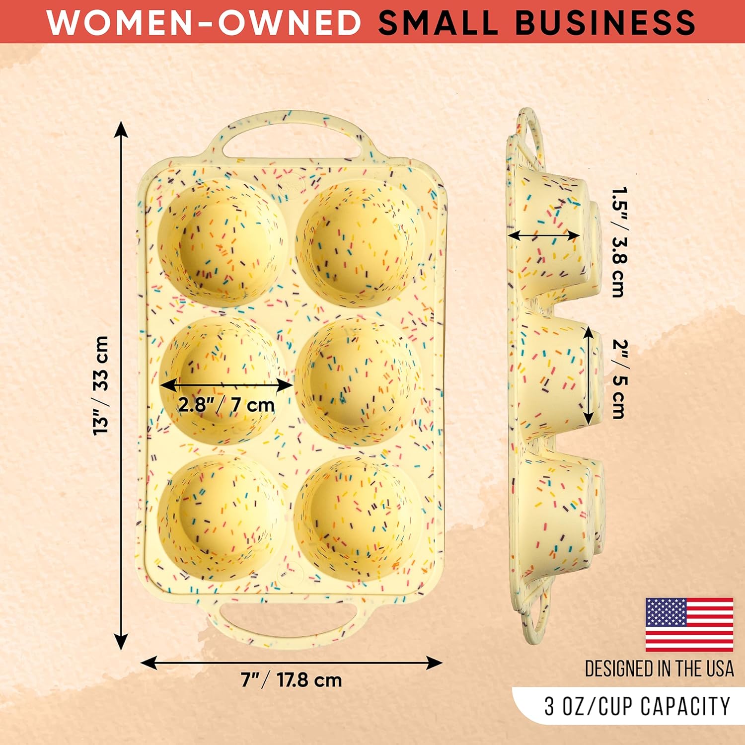 - Perfect Size for Daily Use – 6 Cup Standard Capacity: Whether you're baking for the family or meal prepping, this cupcake baking pan is just right. A reliable silicone muffin pans for baking solution that fits all ovens with ease.