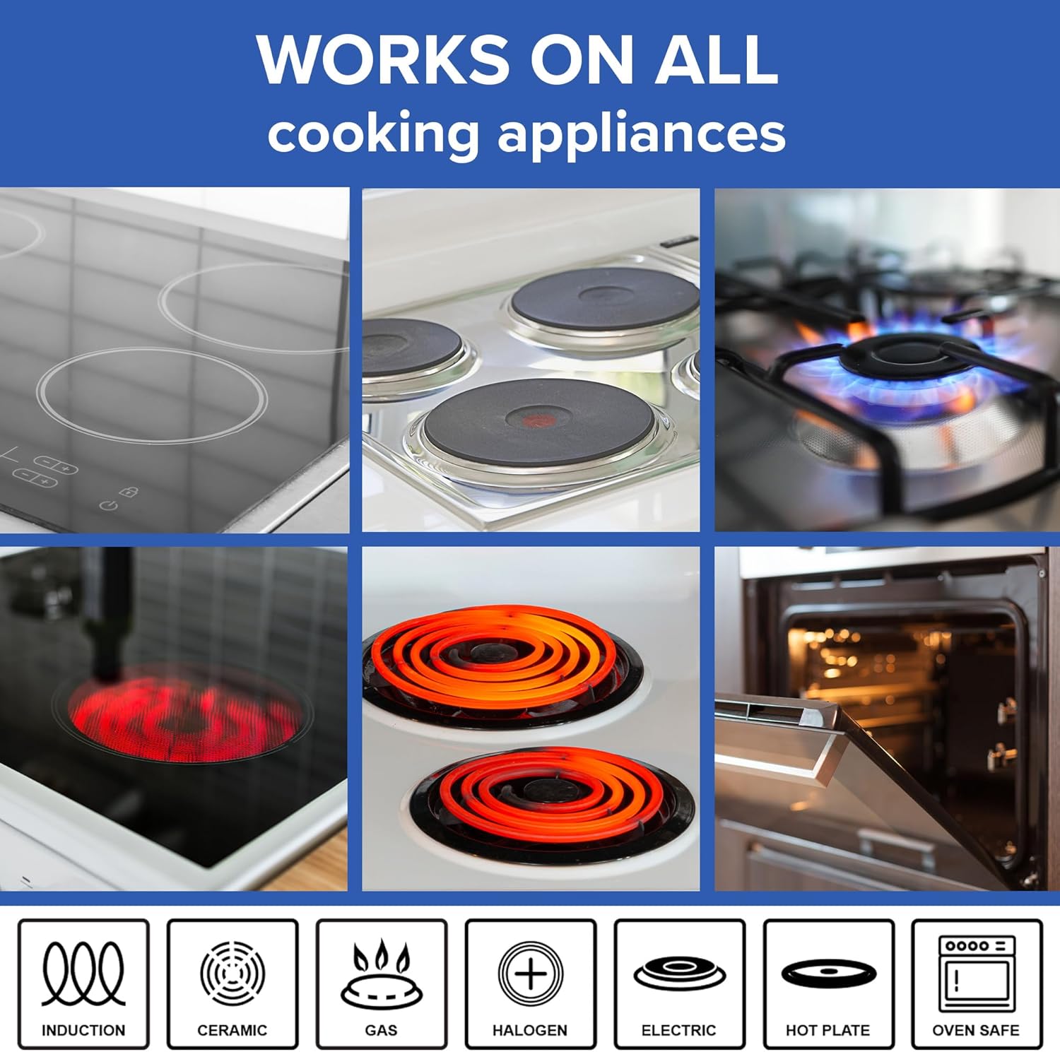 - ALL COOKTOP & OVEN SAFE – Every piece of the cookware set is also safe for use on all cooktops including electric and gas stoves. They’re oven-safe up to 500°F for seamless transition from stove to oven.