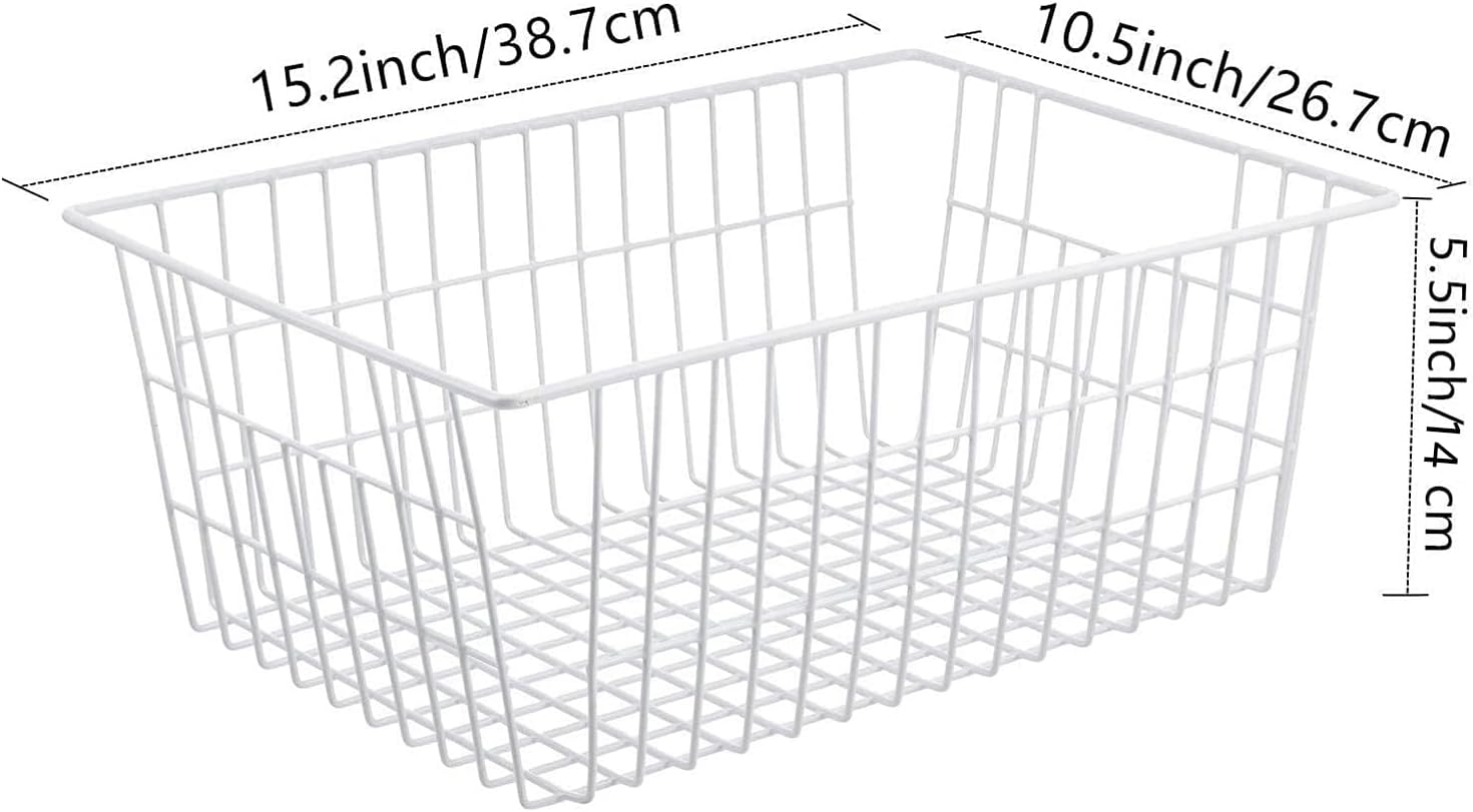 Redrubbit Wire Storage Baskets, Large Farmhouse Metal Freezer Basket Storage Organizer Bins with Handles for Kitchen Cabinets, Pantry, Closets, Bedrooms, Bathrooms, Set of 4, White