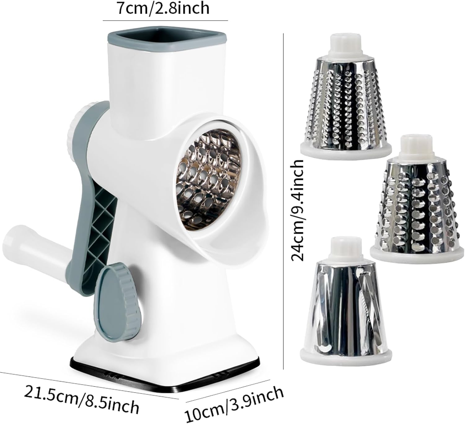 Rotary Cheese Grater Multi-Purpose Stainless Steel Cheese Shredder - Cheese Grater With Handle Effortless Grating of Carrots, Potatoes, Vegetables, and Fruits (White)