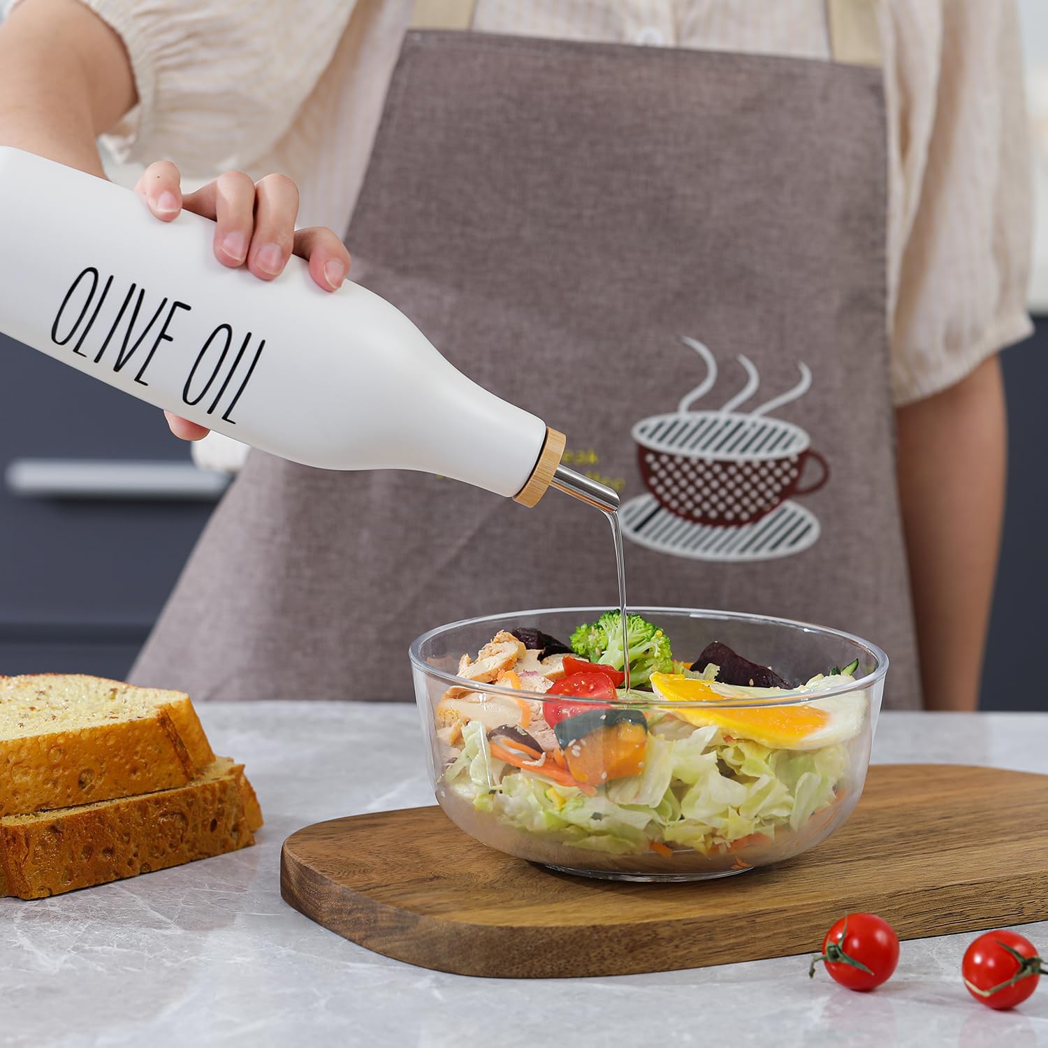- Ceramic Oil Dispenser: 16.9oz Olive Oil Cruet Bottle with Bamboo Cap and Stainless Steel Spout