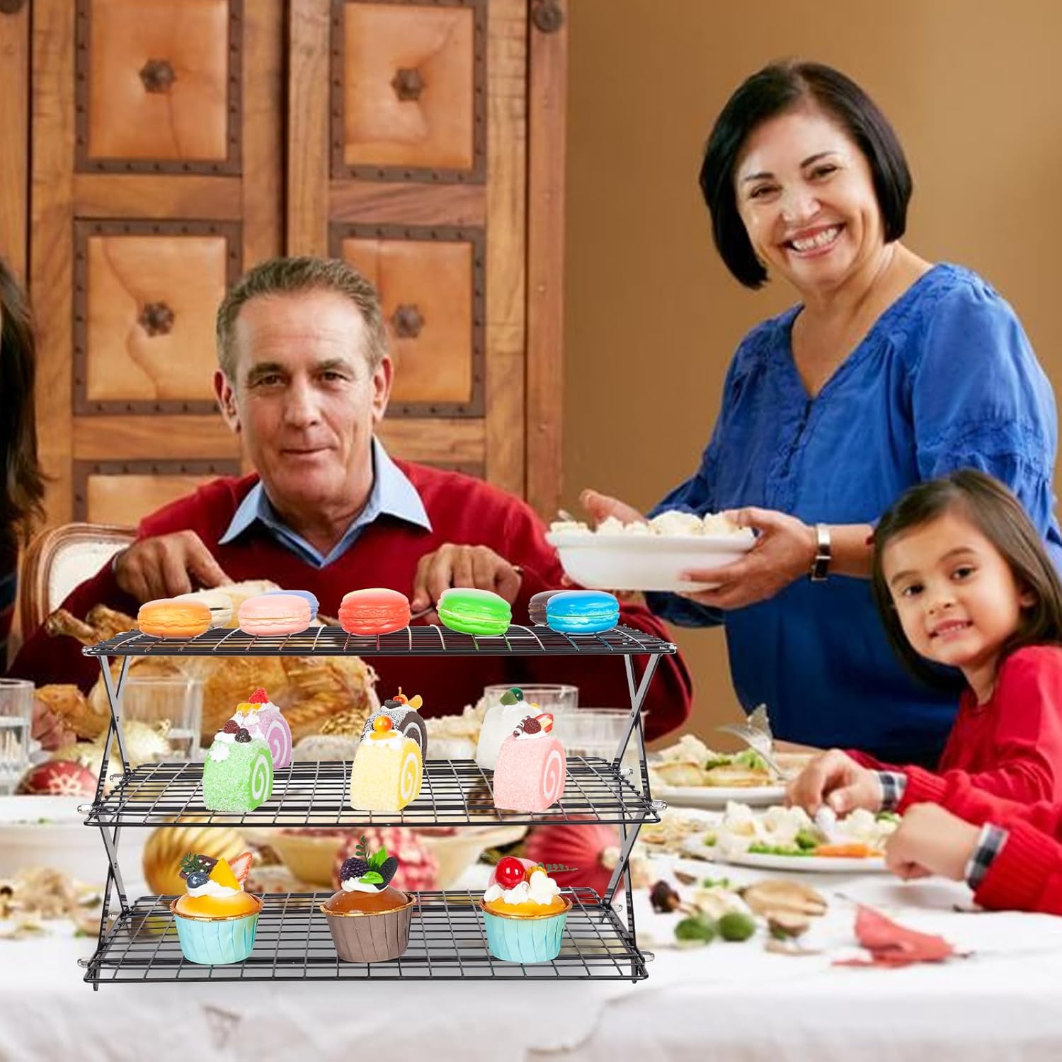 - Space Saving: Our cooling rack for baking with collapsible designed, when not in use, the cooling rack can be folded down into one compact piece for easy storage, without taking up lots of space, also easy to carry when you have some outdoor activities, like camping, grilling, outdoor party, it can be use as a storage rack to display your food, cake, cookies, grilling, etc