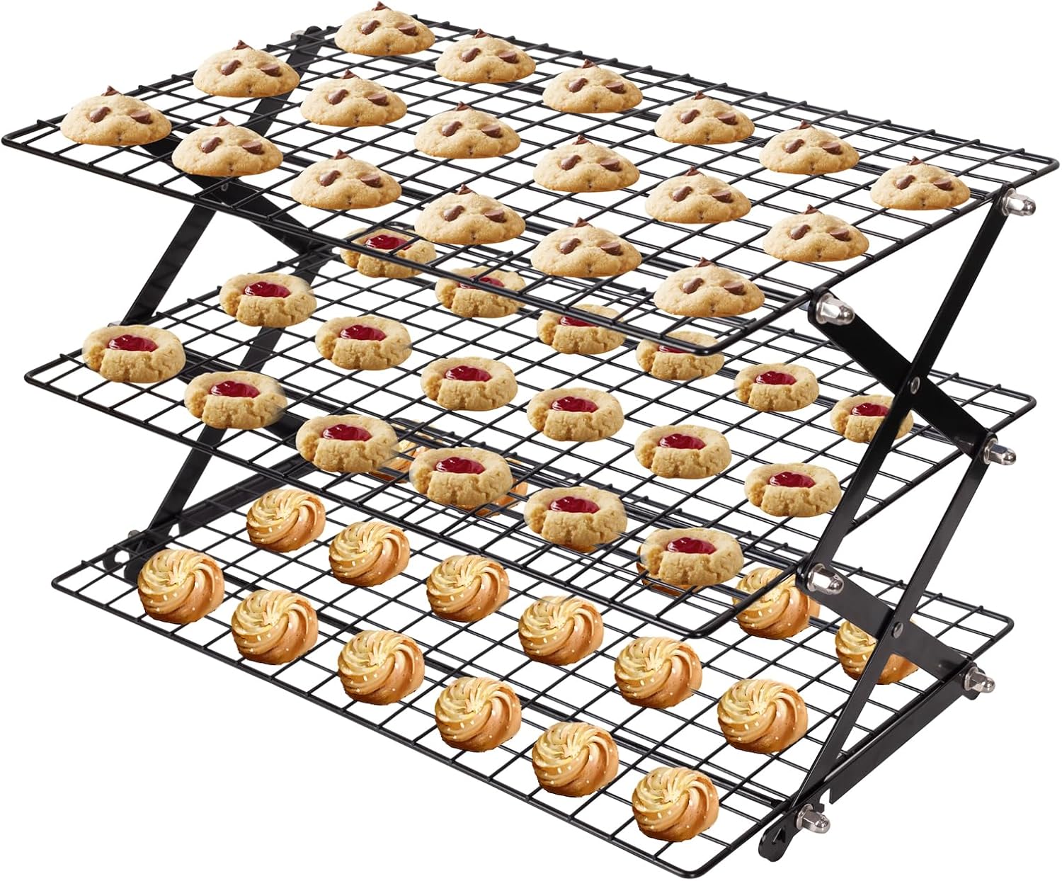 - 3 Tier Collapsible Cooling Rack: ShellKingdom Cooling Rack features a 3-tier wire cooling rack, works for most of cookies, cakes, cupcakes, pizza, muffins, pies, and other items with small size to large weight