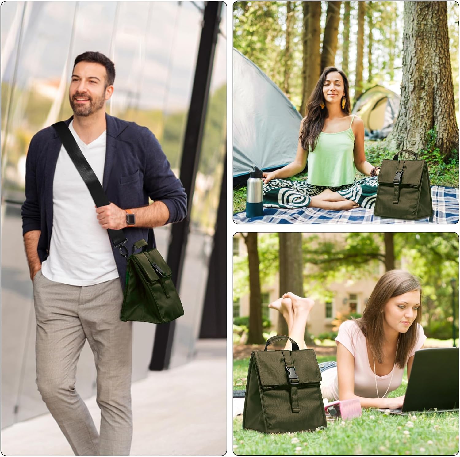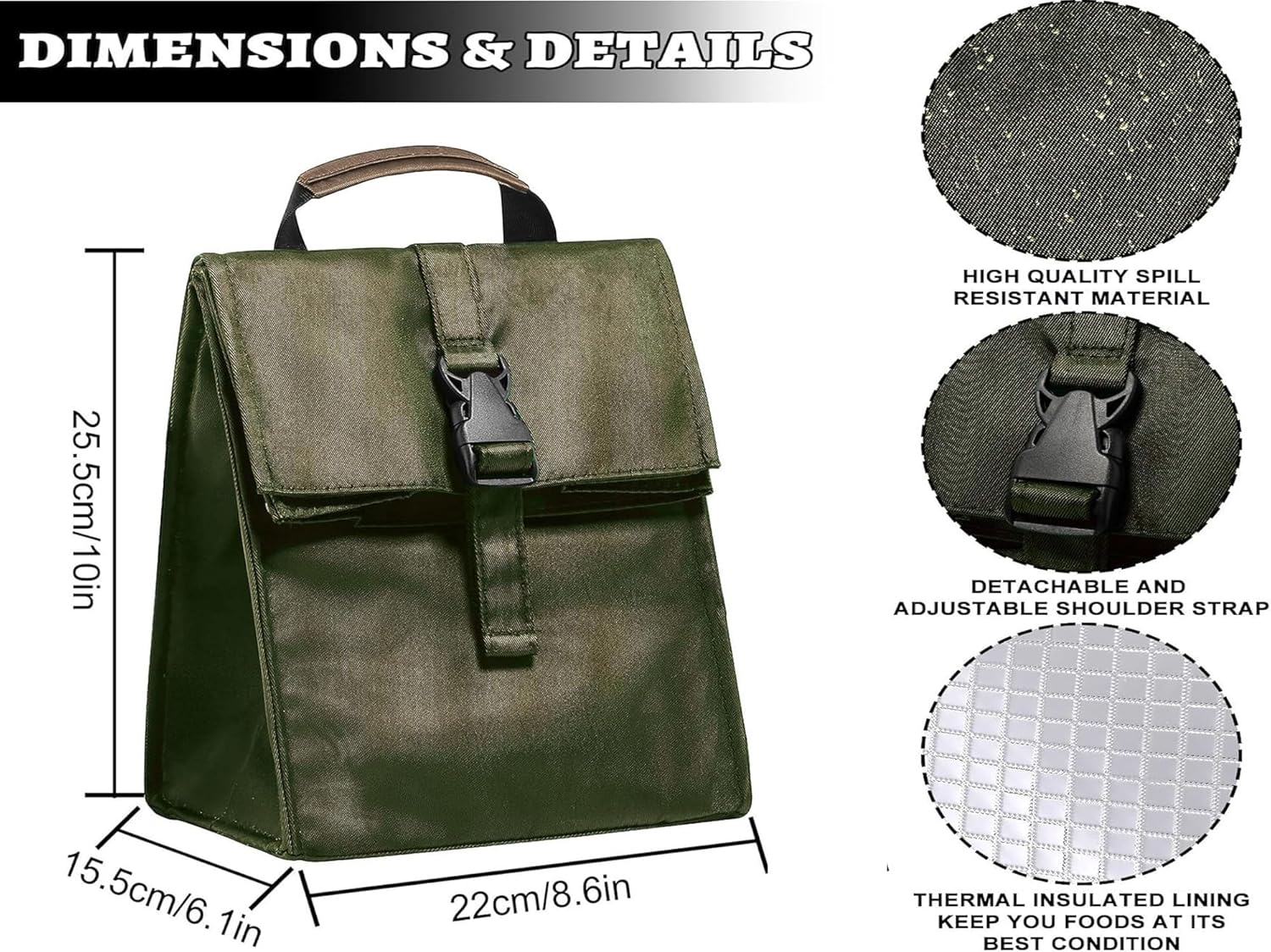 Insulated Foldable Lunch Bag- Lightweight Portable with Adjustable Shoulder Strap Lunch Box for Men, Women, Office, Work, Picnic, Hiking and Beach (Army Green(Soft Fabric))