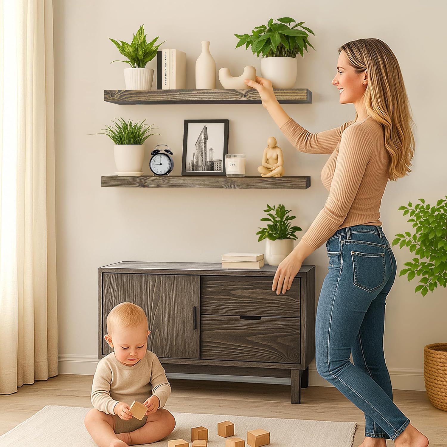 - Easy Installation: Installing our floating shelf is a breeze. With user-friendly instructions and included mounting hardware, you'll have it securely hung on your wall in no time, adding both charm and organization to your space.
