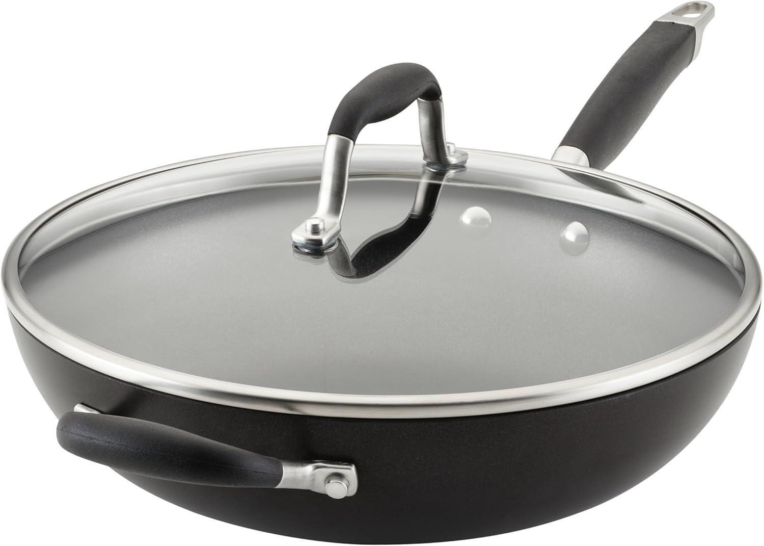 Anolon Advanced Home Hard Anodized Nonstick Deep Frying Pan/Skillet with Lid, 12 Inch, Onyx