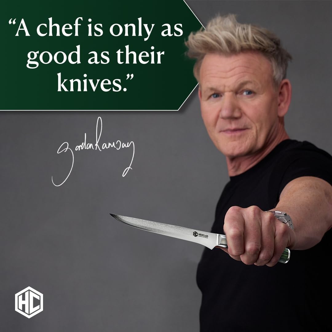 HexClad Boning Knife, 6-Inch Japanese Damascus Stainless Steel Blade, Pakkawood Handle
