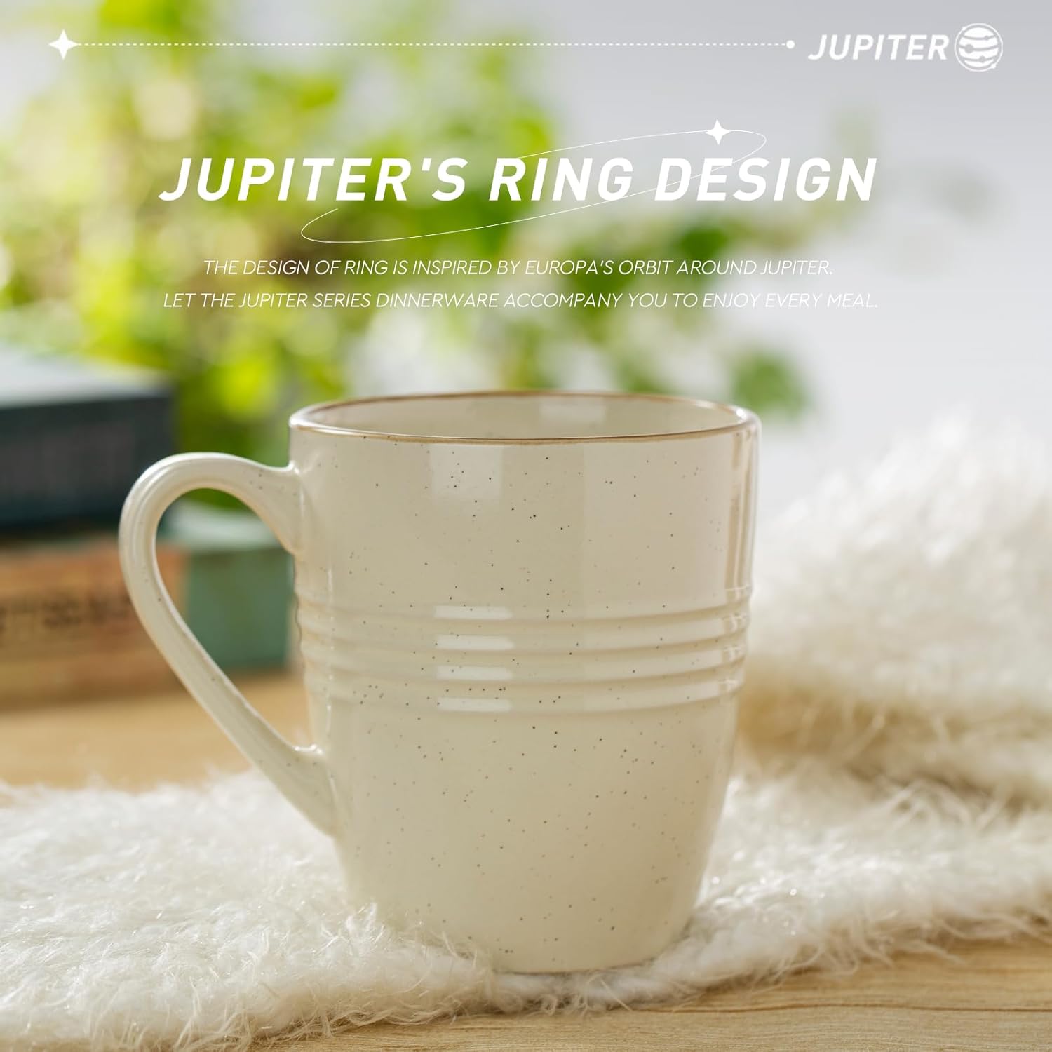 famiware Jupiter Coffee Mugs Set of 4, 14 OZ Coffee Mug, Microwave and Dishwasher Safe, Coffee Cups with Handle for Coffee, Tea, Cocoa, Milk, Vanilla White