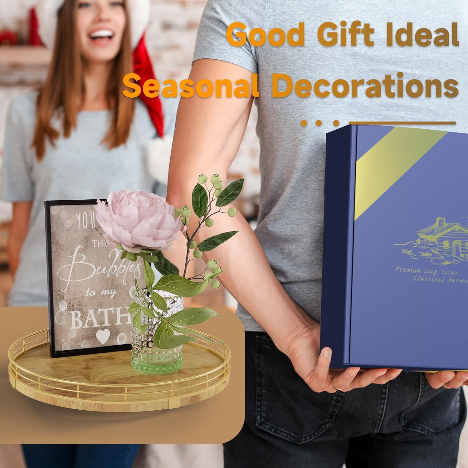 Farmhouse Oak 12" Lazy Susan Turntable Organizer for Cabinet, Round Wooden Lazy Susan Organization and Storage for Dining Table, Pantry, Kitchen, Countertop, Cupboard,Home Decor