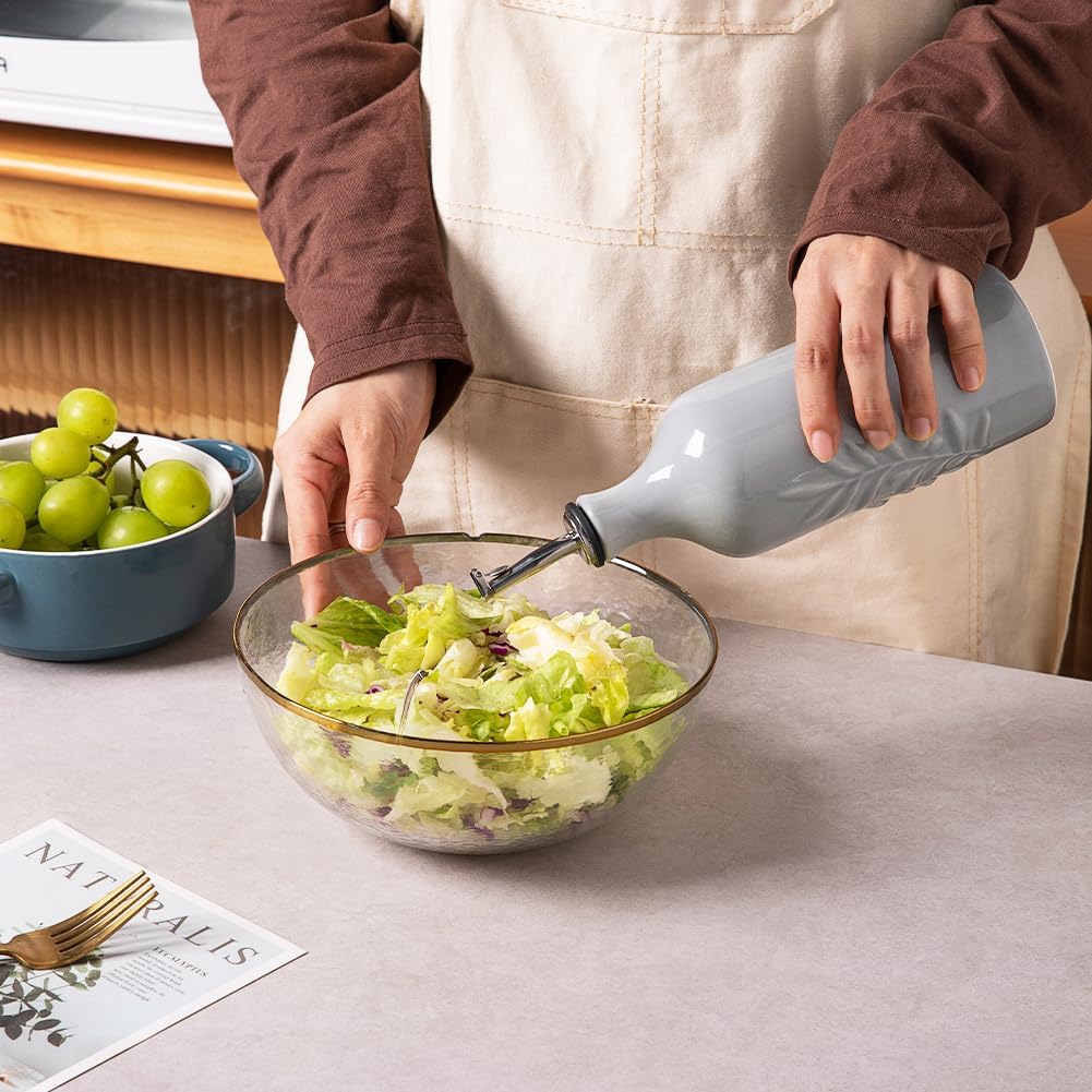 - Modern Relief Design -The bottle body is embossed with olive leaves, which looks elegant and delicate.Precision dumping, bottle body design has a unique spout, can perfectly pour out the oil and vinegar will not leak, the correct control of the use of oil.