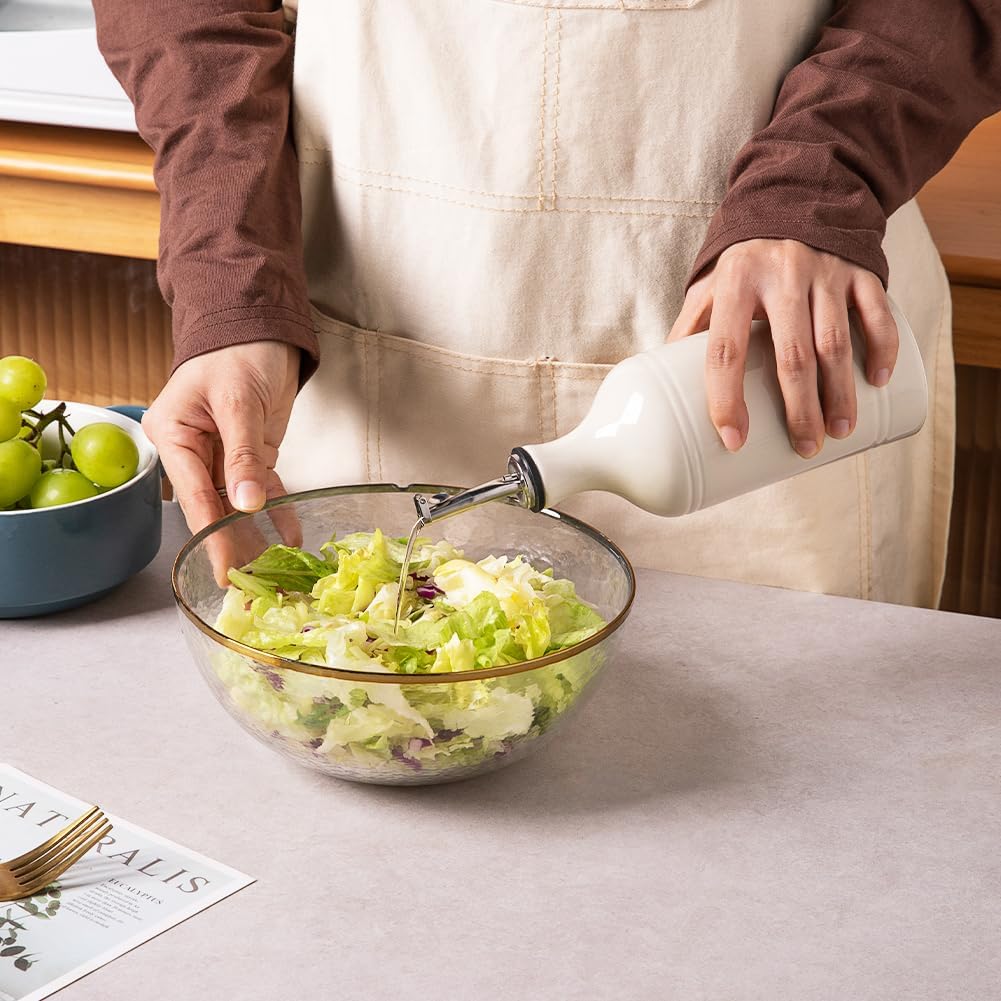 - Leak Proof & Keep Liquid Fresh - The bottle is made of durable ceramic that creates a smooth glaze. And the opaque porcelain bottle protects the oil from light and makes it last longer.