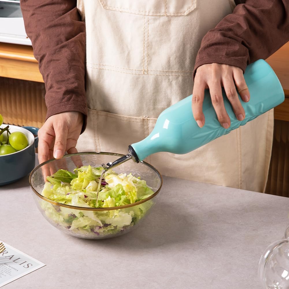 Sweejar Ceramic Olive Oil Dispenser Bottle, 24 Oz Relief Design EVOO Oil and Vinegar Dispensing Bottle with Spout for Kitchen, Set of 1 (Turquoise)