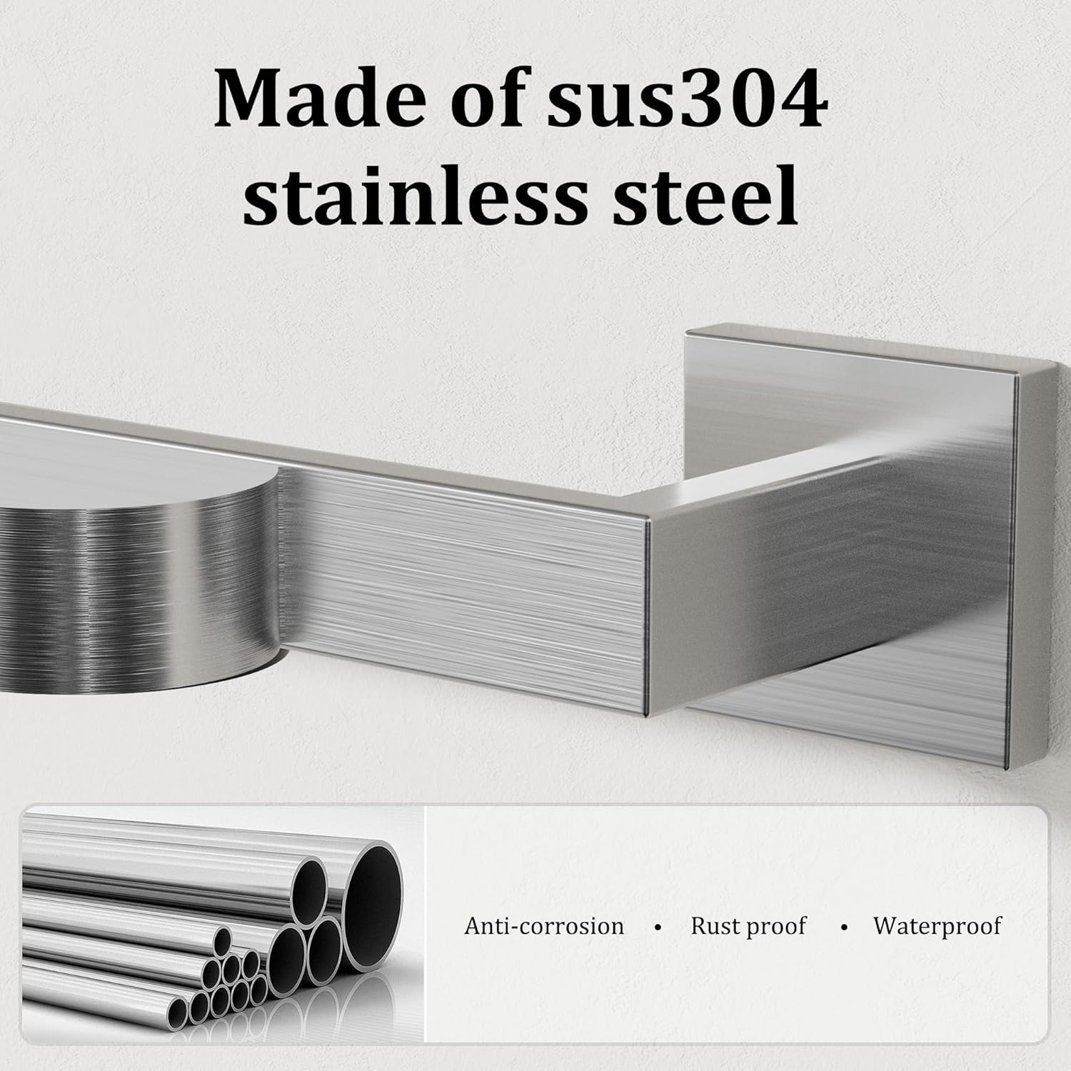 - 【Professional-Strength SUS 304 Stainless Steel】The towel bar constructed of SUS304 stainless steel; h-iq steel material features high hardness and rust resistance, strong and durable properties ensure long service life.The towel holder is finished by hand fine polishing brushed, with smooth and pure surface, retaining the most original beautiful stainless steel color