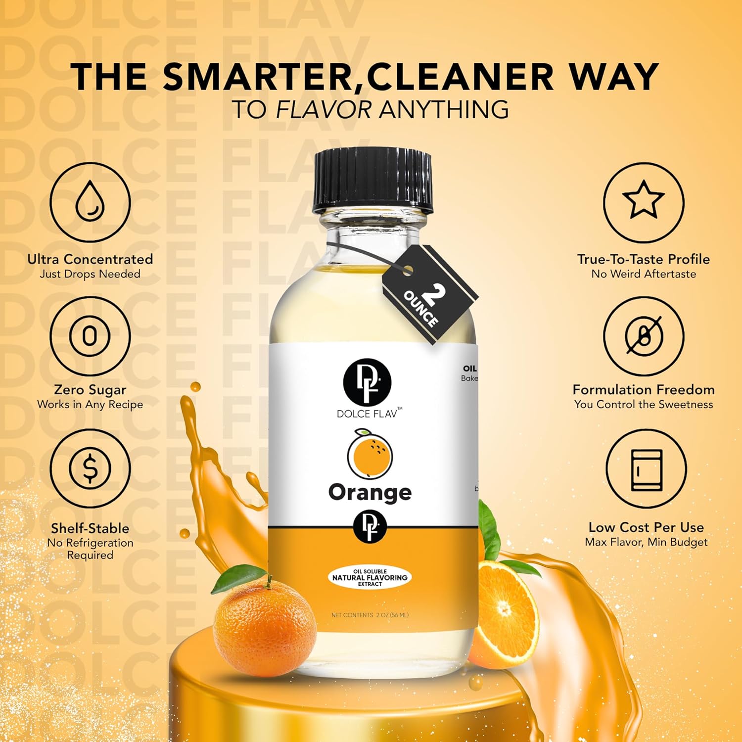 - Revolutionize Cooking with Orange: Transform marinades and dressings with our orange flavoring extract, adding luxurious orange notes to both sweet and savory dishes.