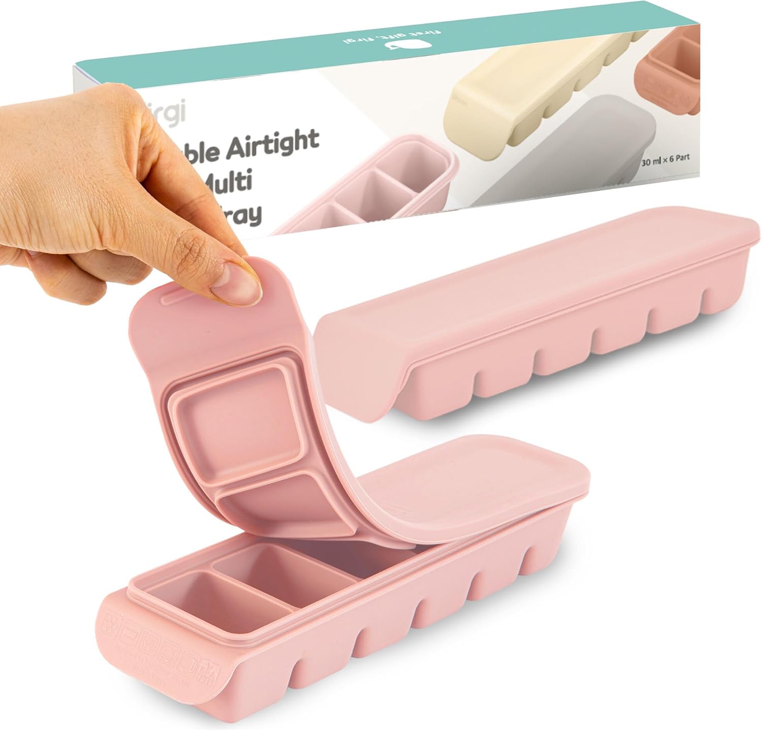 Silicone Freezer Trays with Lid, 1oz 6 Section - Leak Proof Silicone Freezer molds for Homemade Baby Food Breastmilk, Purees, Vegetables, Baby Food Jars Ice Tray with Lid BPA Free Pastel Pink