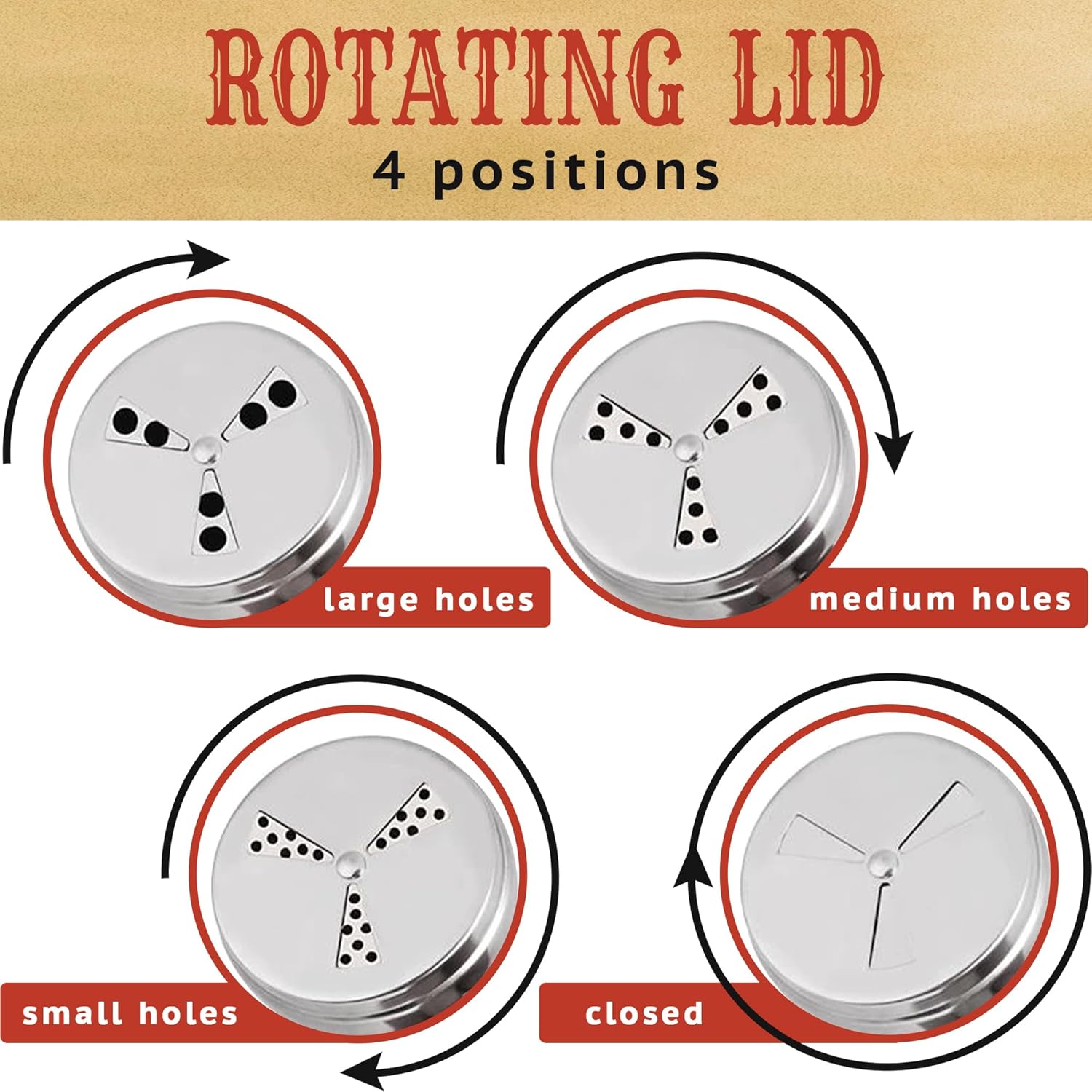 CUSINIUM [Pack of 2] 14 oz Seasonings Spice Shakers - BBQ Dry Rub Shakers - Cooking Dredge with Adjustable Fan-Style Lid and Handles