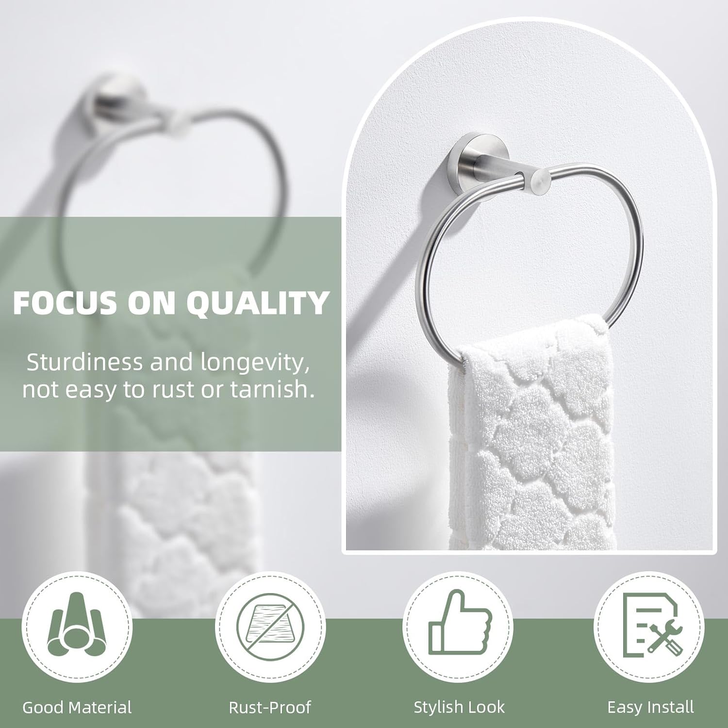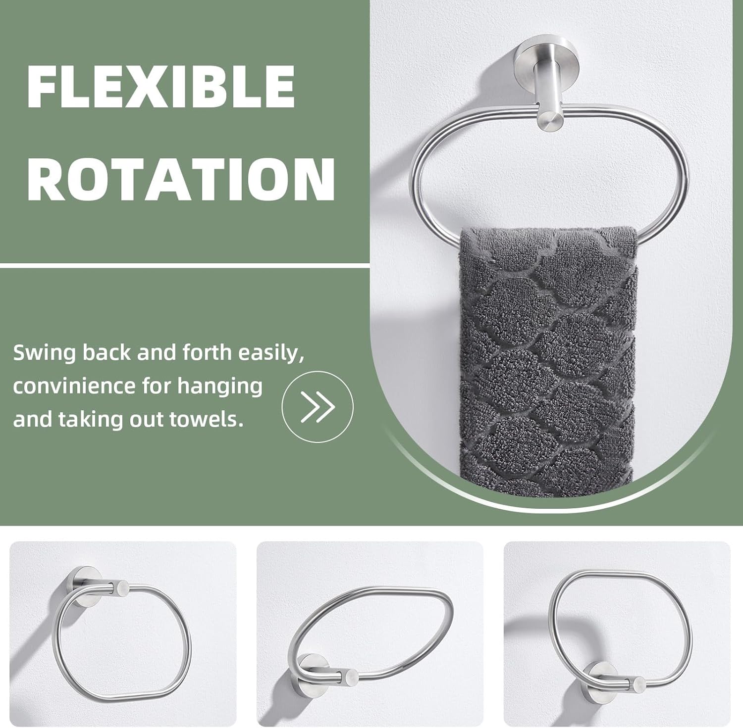 Suyar Towel Ring Brushed Nickel, SUS 304 Stainless Steel Bathroom Hand Towel Holder Wall Mounted, Oval Shape