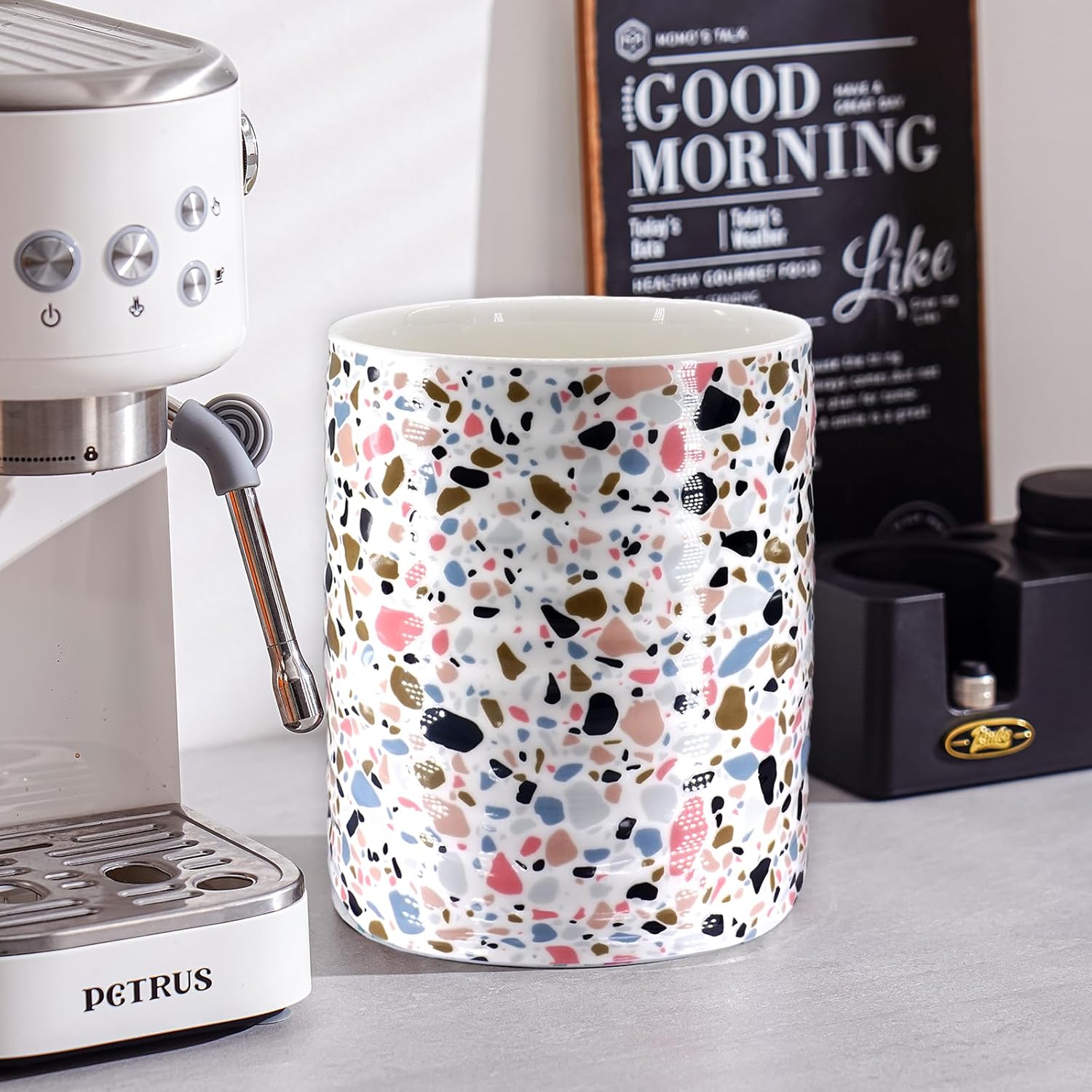 Kitchen Utensil Holder,7.2″Extra Large Stable Terrazzo Marble Pattern Ceramic Utensil Crock,Utensil Organizer for Countertop,Kitchen Decor,Utensil Holder for Housewarming,Wedding Gift Pink