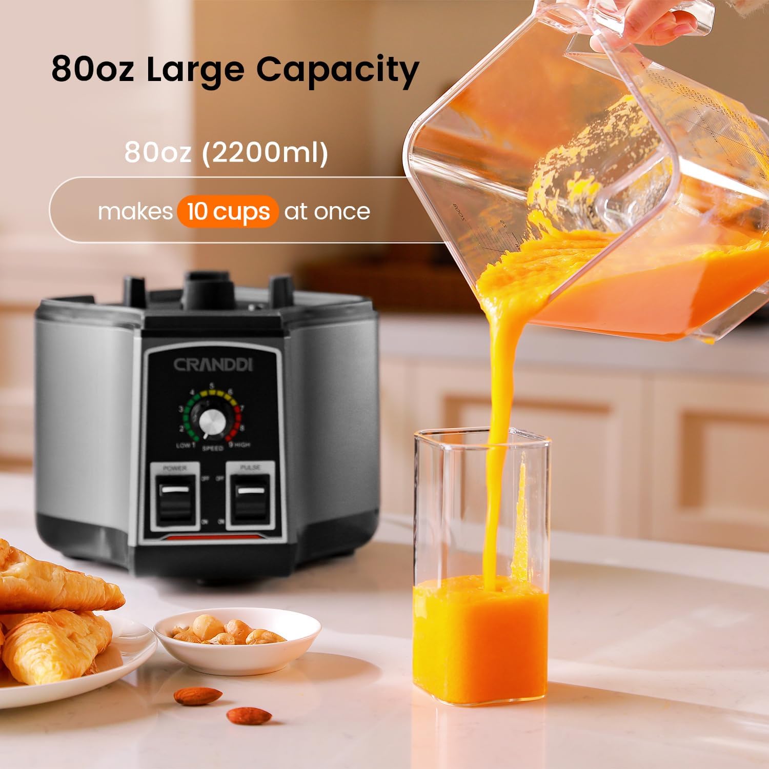 - 80oz LARGE CAPACITY - CRANDDI commercial blender K85 come with large 80oz 2.2 liter capacity allow you to make 8 to 11 cups of smoothies, shakes, or juice at one time