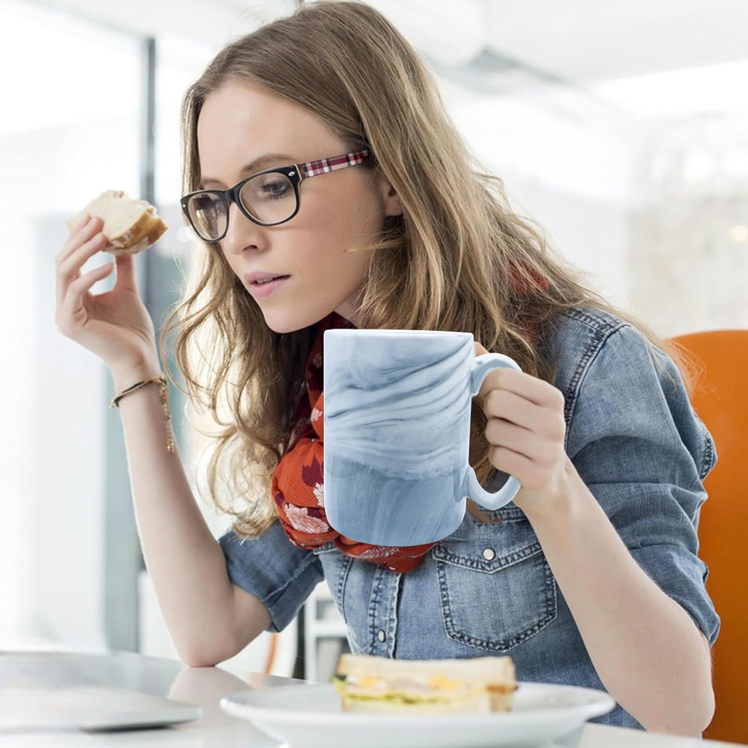Coffee Mugs Set of 4,16 OZ Large Marble Ceramic Tea Cups with Big Handle,Bulk Grey Marble Mugs Set for Latte, Beer,Cappuccino,Microwave Dishwasher Safe Cup for Men Women Gift