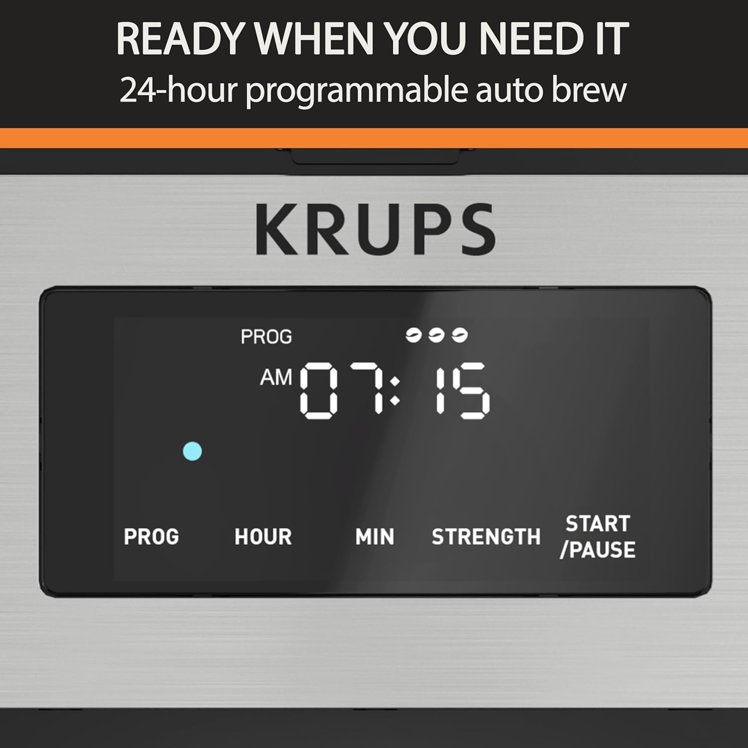 Krups Simply Brew Stainless Steel and Thermal Carafe Drip Coffee Maker 12 Cup Programmable, Customizable, Digital Display, Insulated Coffee Filter, Dishwasher Safe, Drip Free Silver and Black
